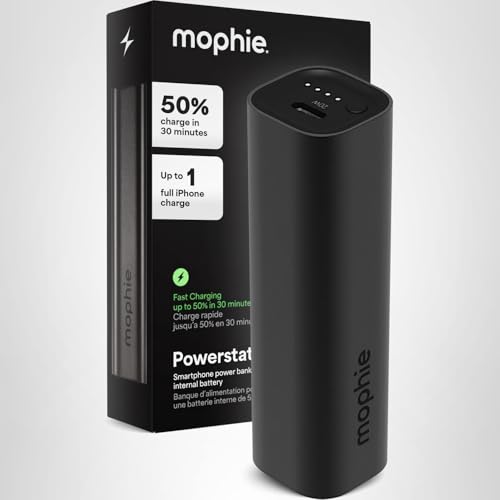 The Mophie Powerstation Fast 5,000mAh is a compact and reliable portable charger that ensures you never run out of battery when you need it most. With a 5,000mAh internal battery, it delivers up to one full phone charge, keeping you connected throughout the day. Featuring fast-charging USB-C PD technology, the Powerstation Fast 5,000mAh provides 20W output, allowing you to charge your phone up to 50% in just 30 minutes. Whether youβre charging your smartphone, headphones, or other small devices, this pocket-sized power bank delivers a quick and efficient power boost when you're on the go. The Powerstation Fast 5,000mAh is designed for portability, with a sleek, lipstick-sized form factor that fits comfortably in your pocket or bag. The durable anodized aluminum body with a soft-touch finish ensures both style and protection. An LED indicator lets you check the remaining battery life with ease. With its versatile USB-C port, the Powerstation Fast 5,000mAh allows for both device charging and recharging, ensuring hassle-free power management. Plus, it comes with a 9-inch USB-C silicone cable for immediate use. Stay powered and connected with the Mophie Powerstation Fast 5,000mAh. Add to Cart today! Key Features 5,000mAh internal battery β Provides up to one full phone charge USB-C PD 20W output β Charges devices up to 50% in 30 minutes Versatile USB-C port β Charges your device and recharges the Powerstation Fast 5,000mAh LED indicator β Check remaining battery life at a glance Compact, pocket-friendly size β Fits easily in your bag or pocket Premium anodized aluminum body with soft-touch finish Includes a 9-inch USB-C silicone cable for fast, reliable charging Up to 28 hours of video playback, 2 hours of video streaming, or 88 hours of audio playback