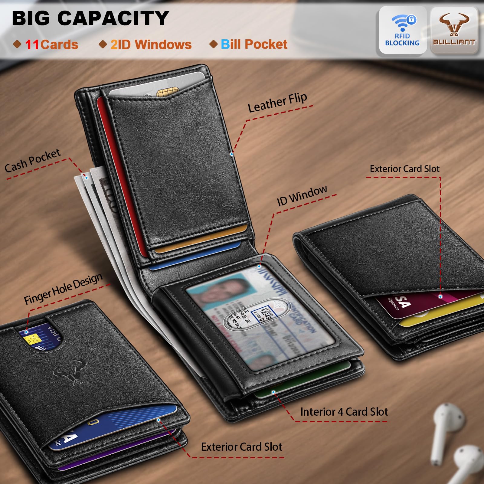 AMPLE STORAGE--Never run out of card space again with our wallet's impressive storage capacity. It can hold up to 11 cards,2 ID windows and 1 billfold for all your essentials;