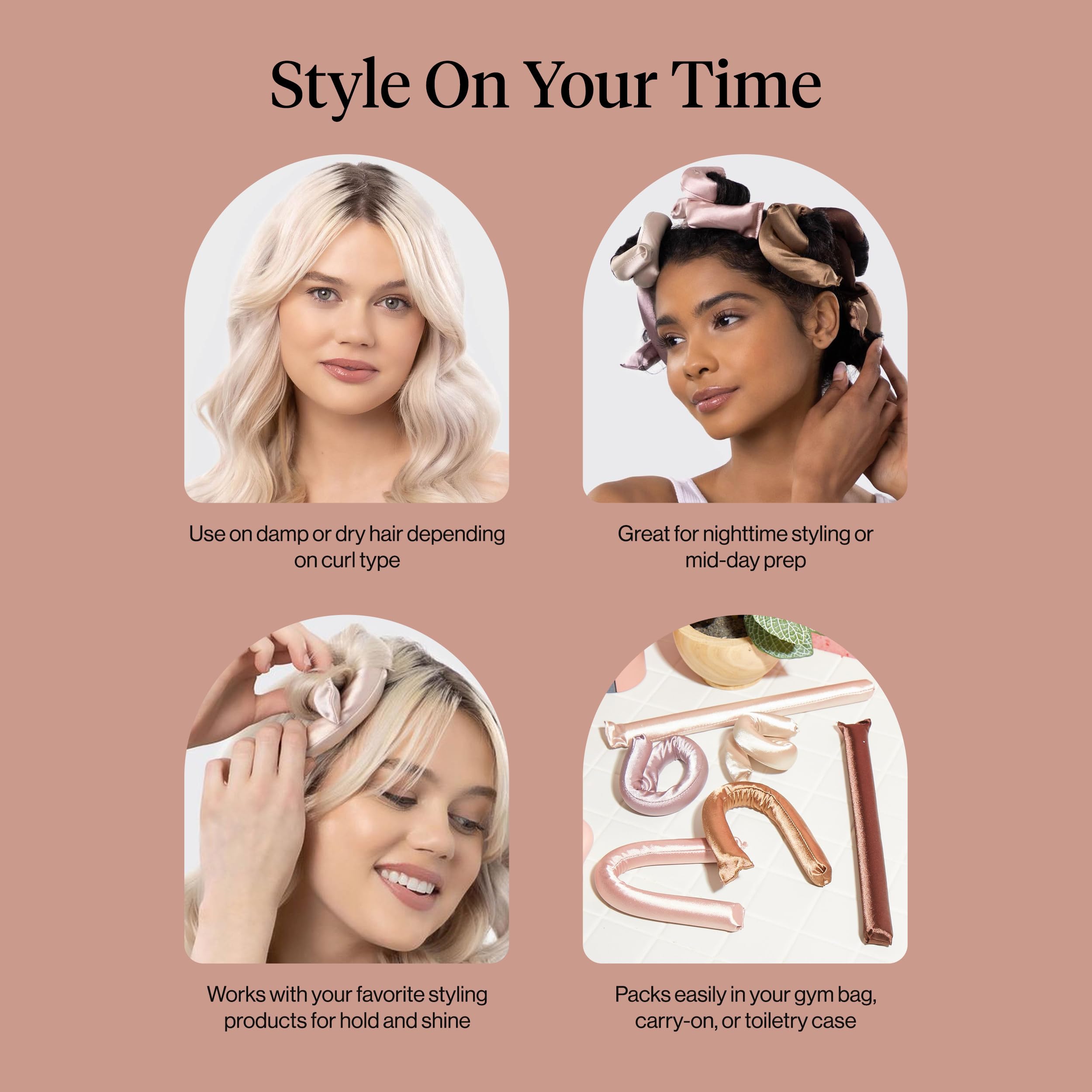 SIMPLE, QUICK STYLING WITH LASTING RESULTS: Achieve gorgeous curls in just 5 minutes! No complicated settings, buttons, or temperature adjustments required - just wrap your strands around the satin curling rod and secure with a scrunchie. Whether you have curly, straight, or fine hair, the flexible design works for everyone, and with the right technique, you'll avoid any slipping or falling out, ensuring a beautiful style that lasts all day or night.