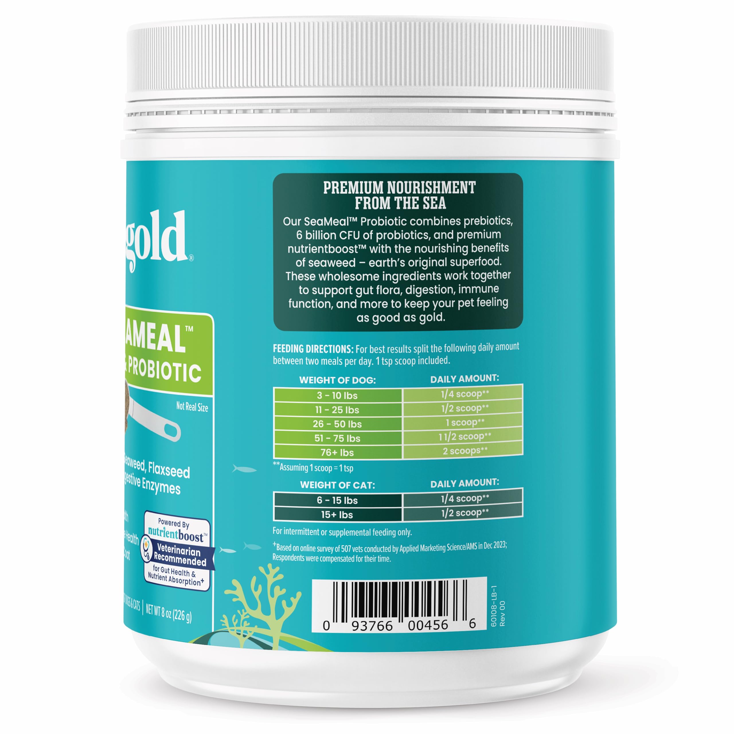 Immune & Bowel Support – Powered by red, green & brown sea kelp, this dog probiotic supplement helps support immunity, nutrient absorption & bowel health. A great cat probiotic & dog probiotic for digestive health & cat constipation relief support
