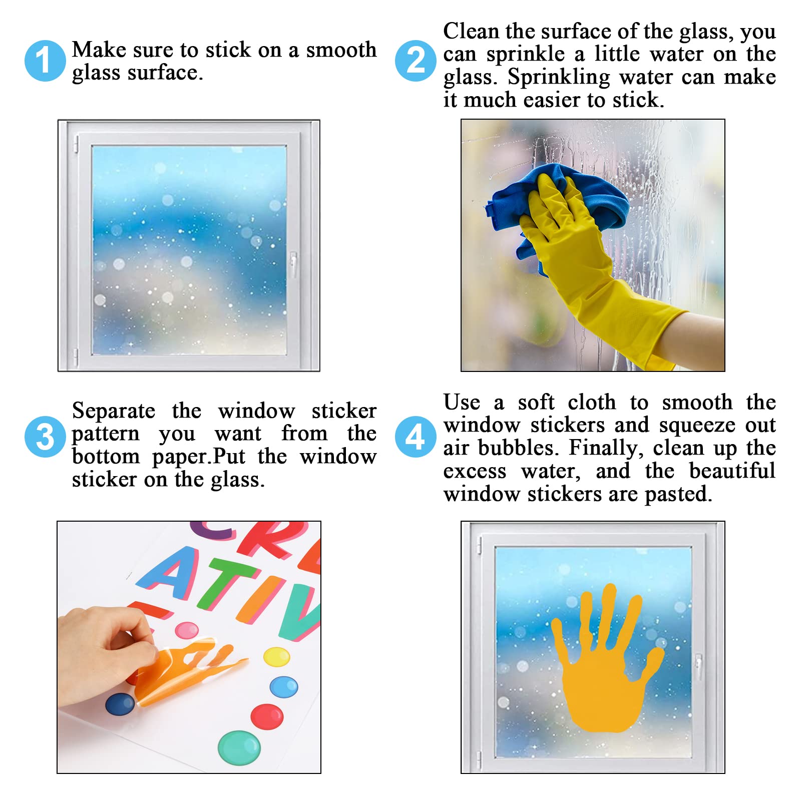 Good-Quality Material - Made from durable PVC material. Before use, you can spray some water on the window, so that the window clings can be more firmly attached to the window, easy to peel, leaving no traces when it is torn off, and the window clings can be reused.