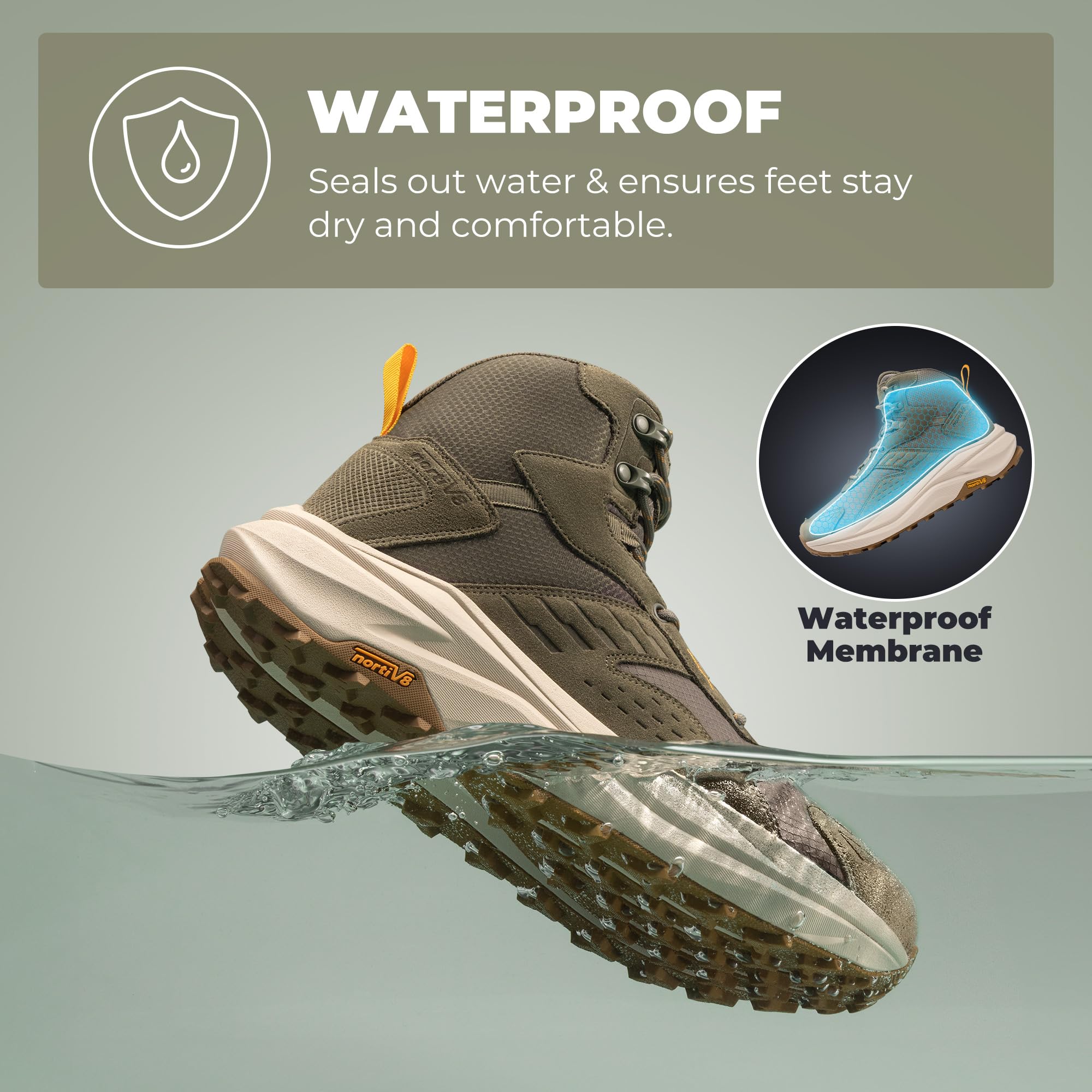 Waterproof Build: With a built-in waterproof membrane, these men's work boots have passed strict waterproof testing, ensuring your feet stay dry and comfortable no matter where the trail takes you.
