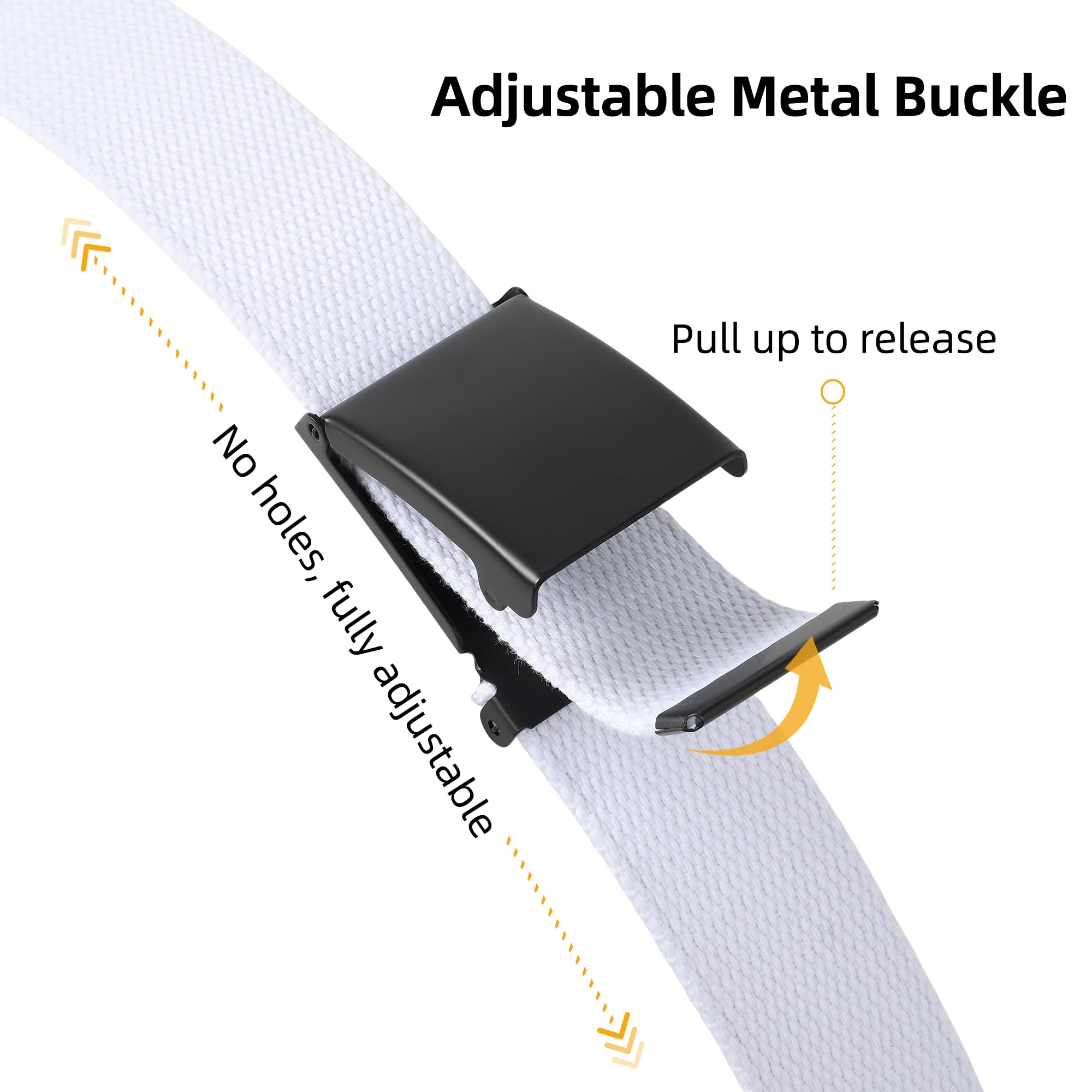 Fully Adjustable: The web belt features a fully adjustable, cut-to-fit length that easily accommodates different needs in daily life. No holes required, canvas belt for men can be easily clamped and adjusted to any tightness, easy to fit everyone, all shapes and sizes!