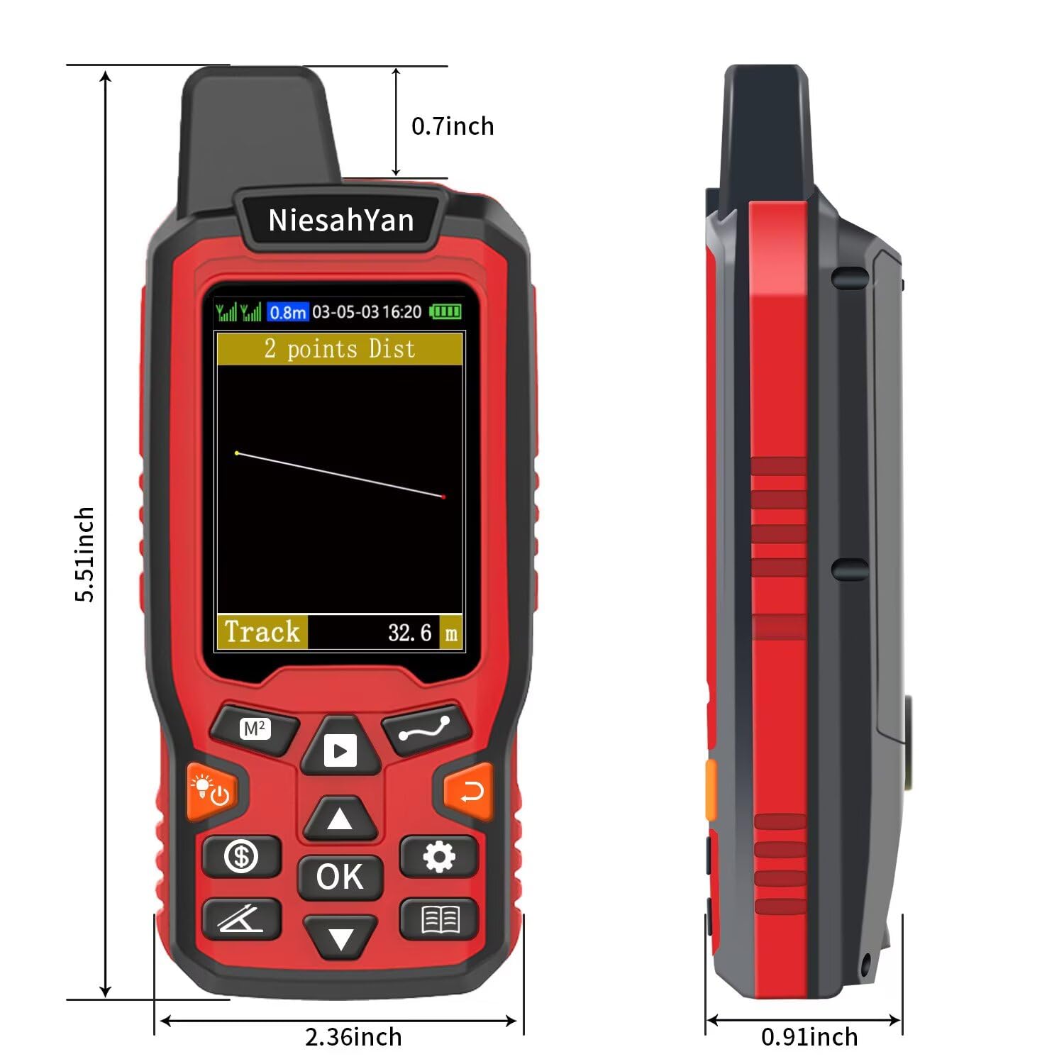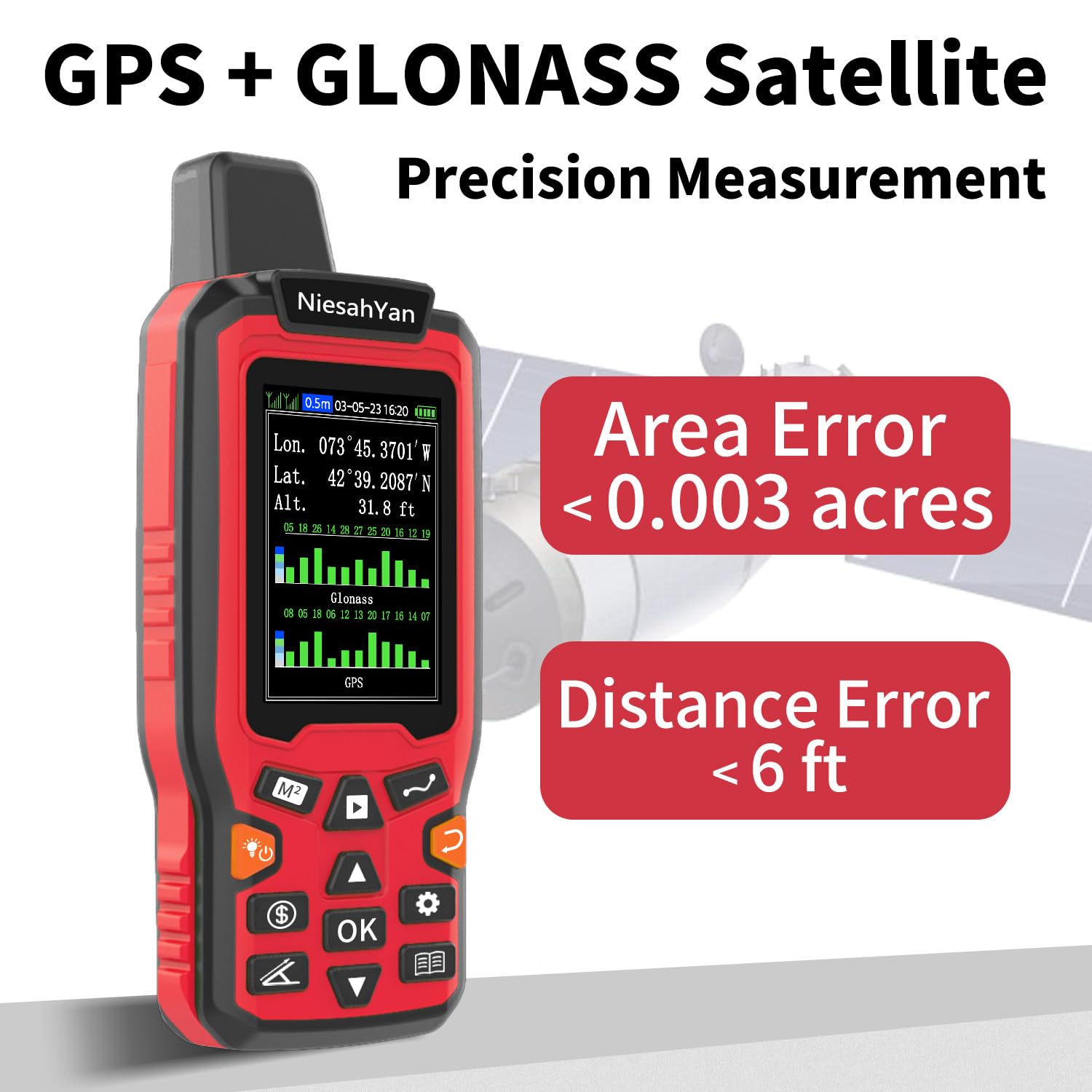 HIGH PRECISION ACCURACY: 2 high sensitivity satellites global GPS + GLONASS coverage for reliable surveying around the world, support for fast positioning and a reliable signal,area measurement error in 0.003 acres,it cannot be used for saving waypoints and navigation