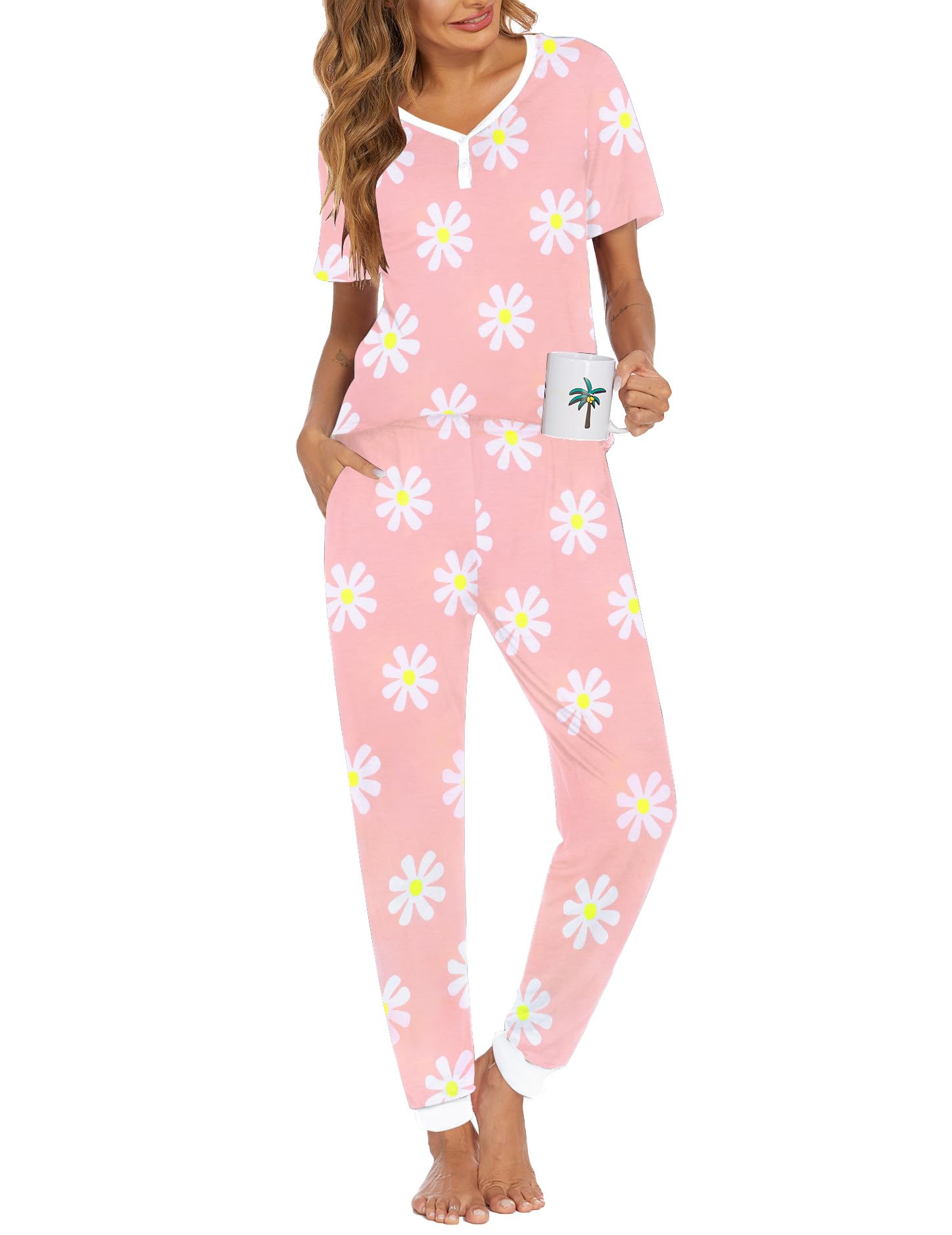 Material: Pajamas sets are made of comfy and light fabric. Sleepwear set is cool, breathable and soft to the touch, will keep you comfortable all night long