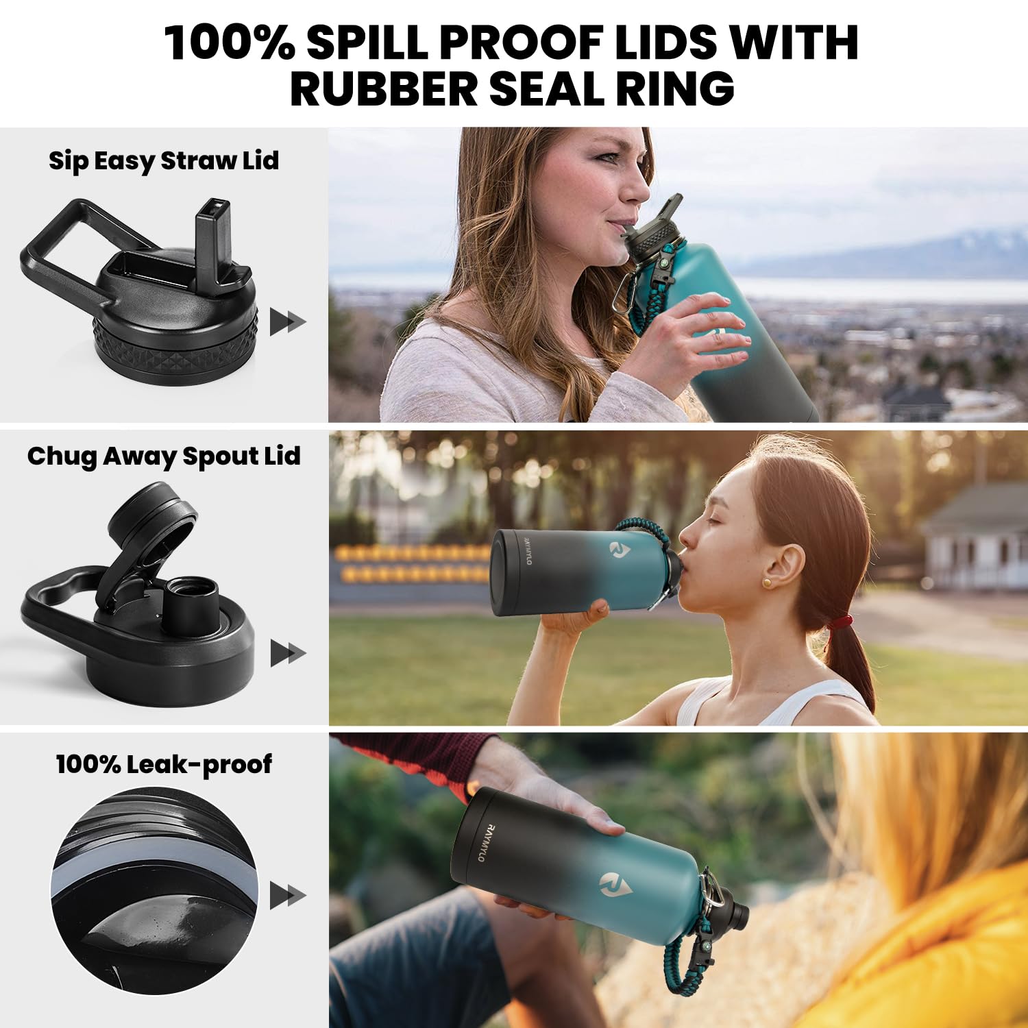 Full Seal Leak-proof Lids: All scenario spout and straw lid with rubber seal ring ensures not a single drop leaks no matter how bumpy your journey gets.Straw lid allows for a quick refreshment without stopping you, while spout lid is great for proper hydration whenever you feel like a boost.Keeps your drinks fresh and spill-resistant on the go