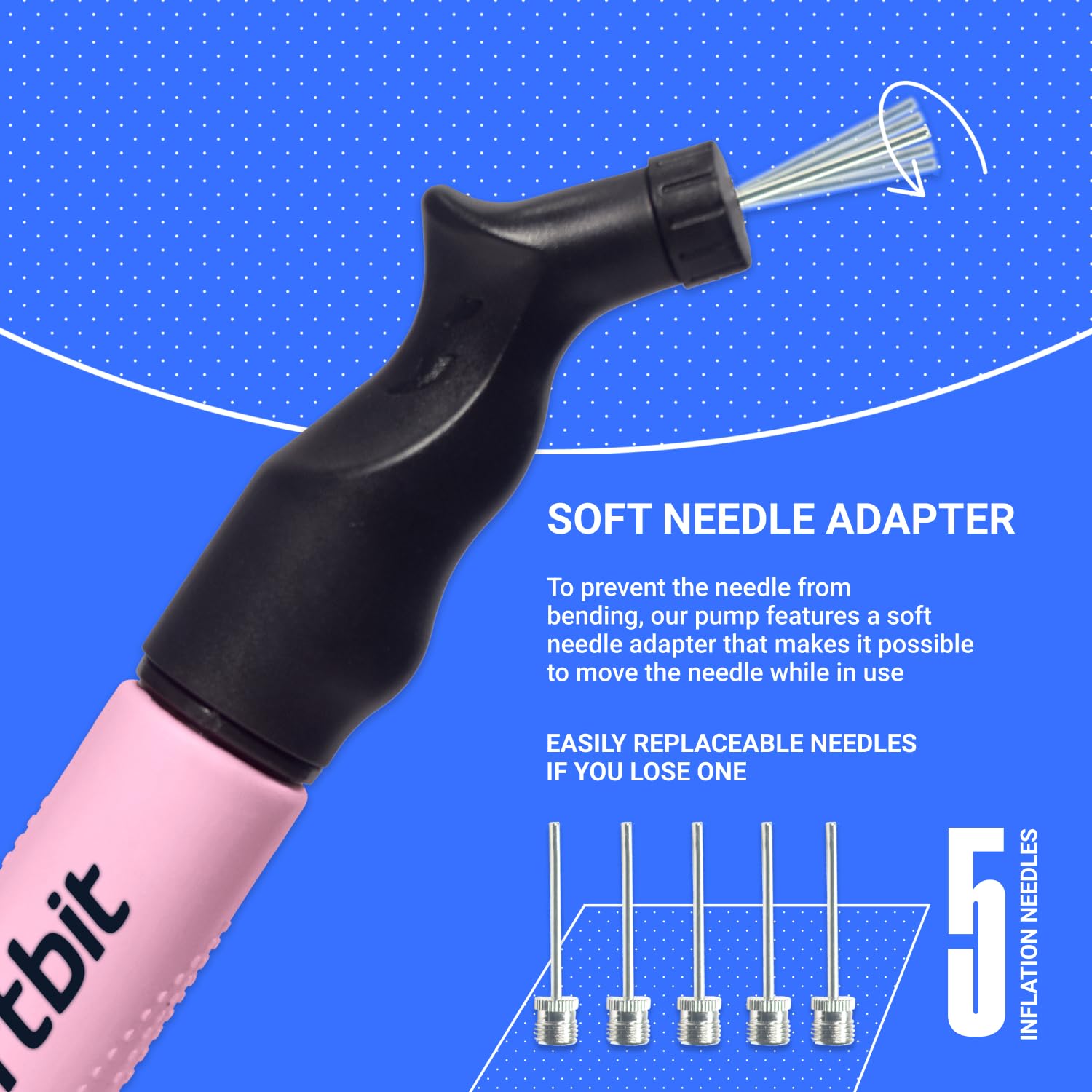 Needles Don’t Bend - Our unique soft needle plug system prevents the needles from bending; This SportBit ball air pump is easy to use