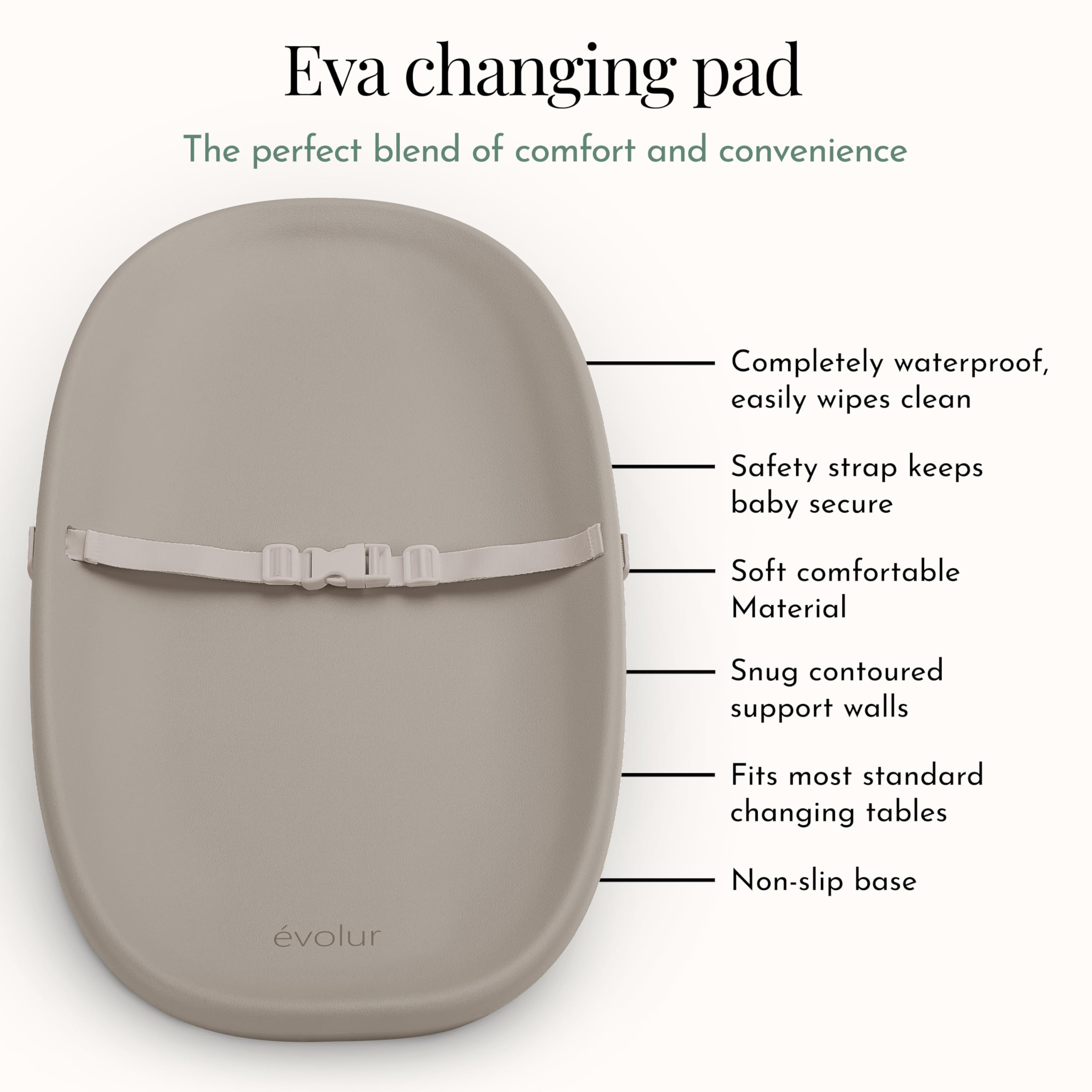 LIGHTWEIGHT & PORTABLE: Featured with contoured walls and made of solid, sturdy construction, the lightweight & portable Evolur Eva Changing Pad fits onto all changing tables.