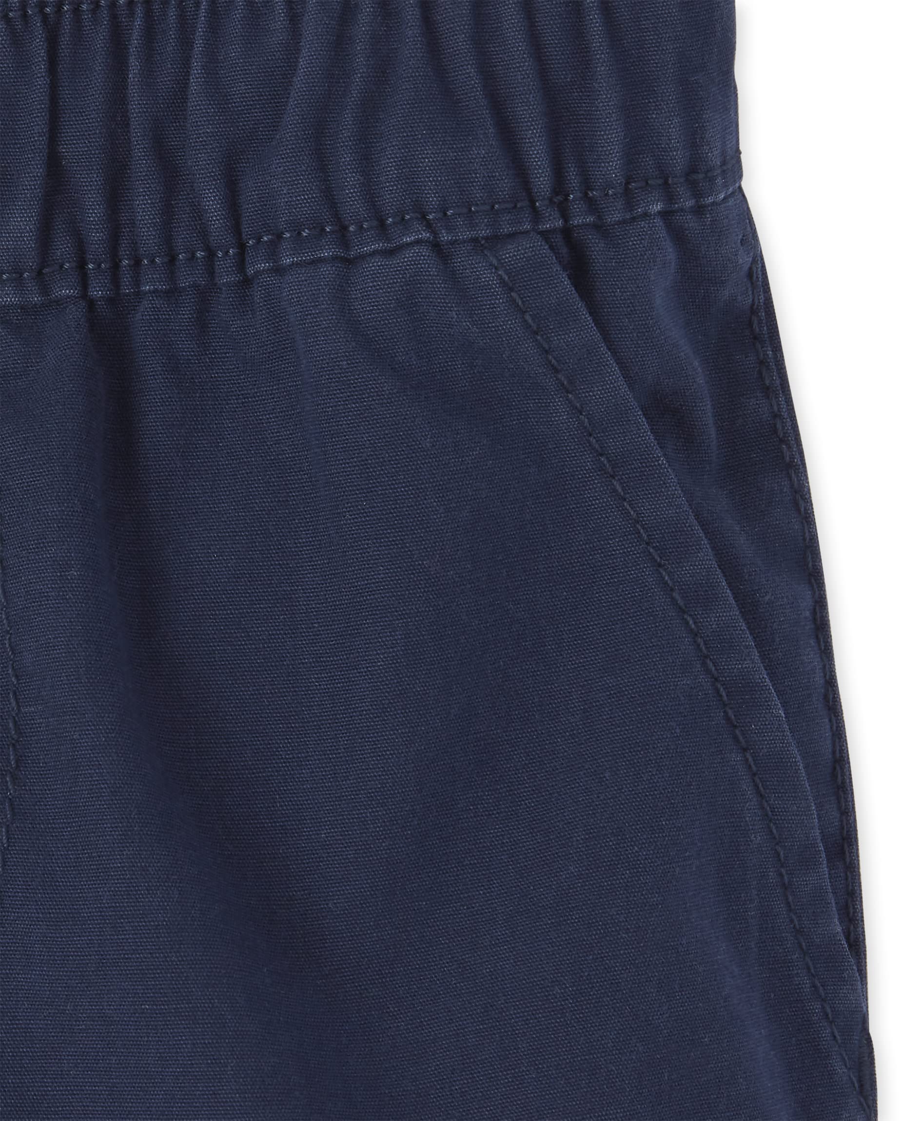 Styled with a pull-on elastic waist, drawstring, and side slant and back patch pockets