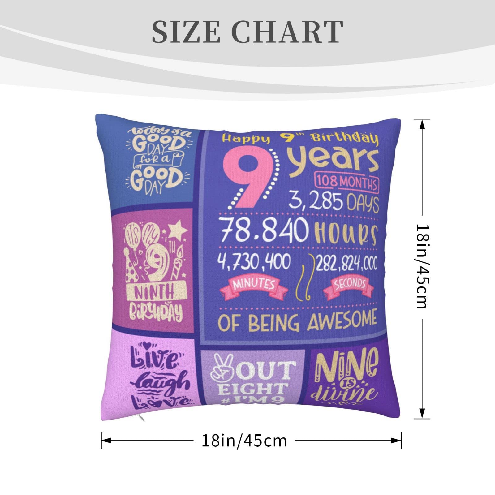 Our mission is to deliver love to the people we love: This is the best 9th birthday gift for a girl. Whether it's a newborn baby, a toddler, a young child, and teen, or an adult, everyone needs a compassionate, caring, and thoughtful gift. This gift throw pillow cover with funny words is a great option. This gift pillowcase is a loving and practical gift. It can be used all year round, not only to bring relaxation to her but more importantly, to make her feel your deep love. PILLOW INSERTS ARE NOT INCLUDED!