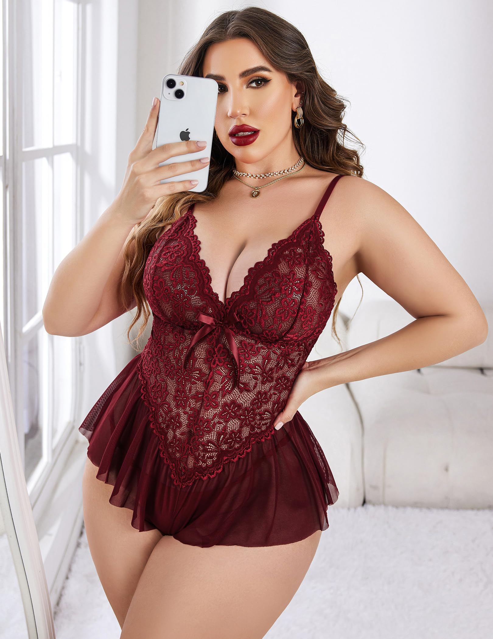 Material: Avidlove plus size babydoll lingerie for women is made of Polyester and Spandex, the lace fabric is very soft, comfortable, breathable, great for close-fiting wear. Stretchy teddy is also perfect as maternity lingerie for boudoir shoots
