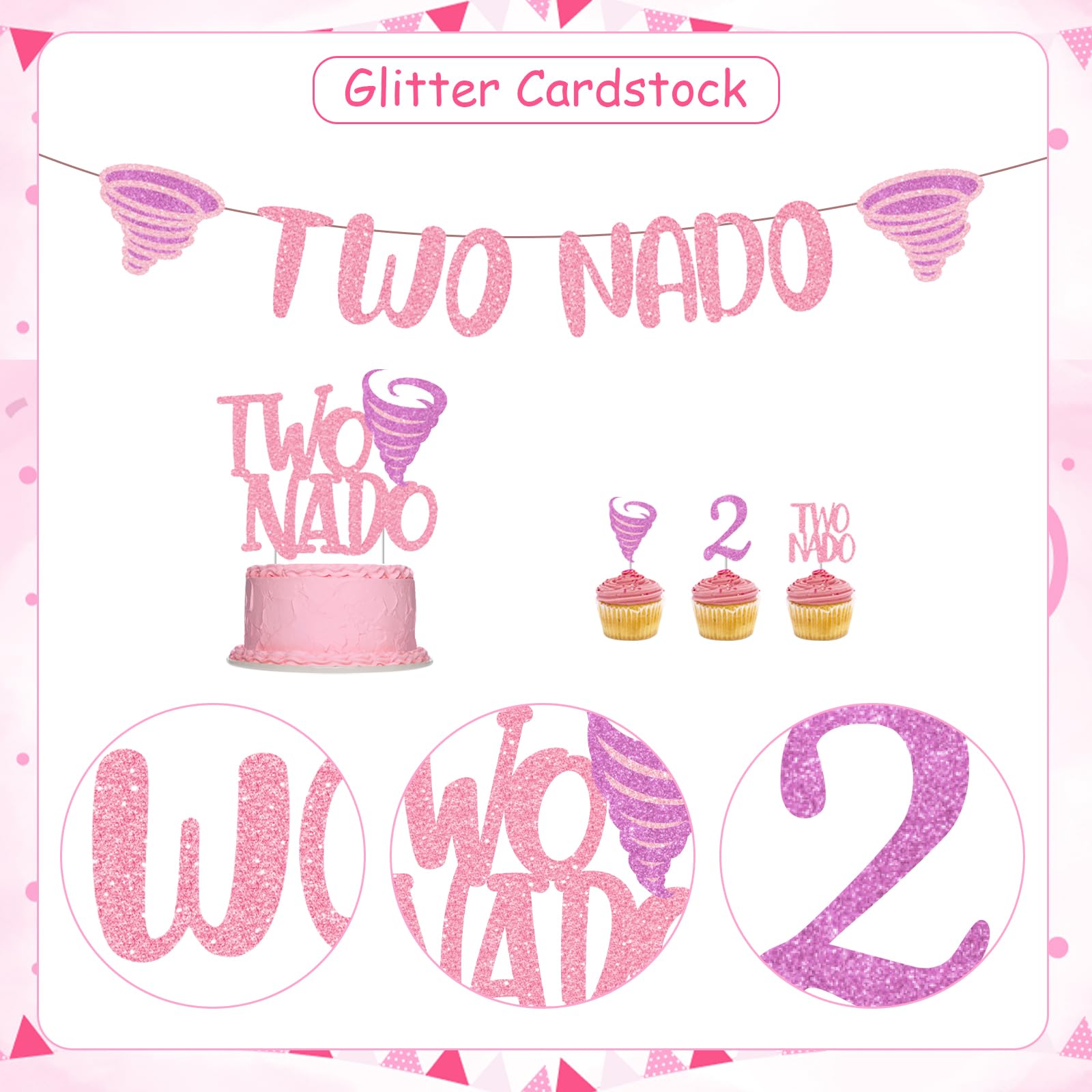 Cake Topper: This "TWO NADO" cake topper has the pink “TWO NADO” words and purple tornado pattern. It is very shiny, which can be inserted into the cake. It will stand out even more at the party to celebrate this important and memorable moment!