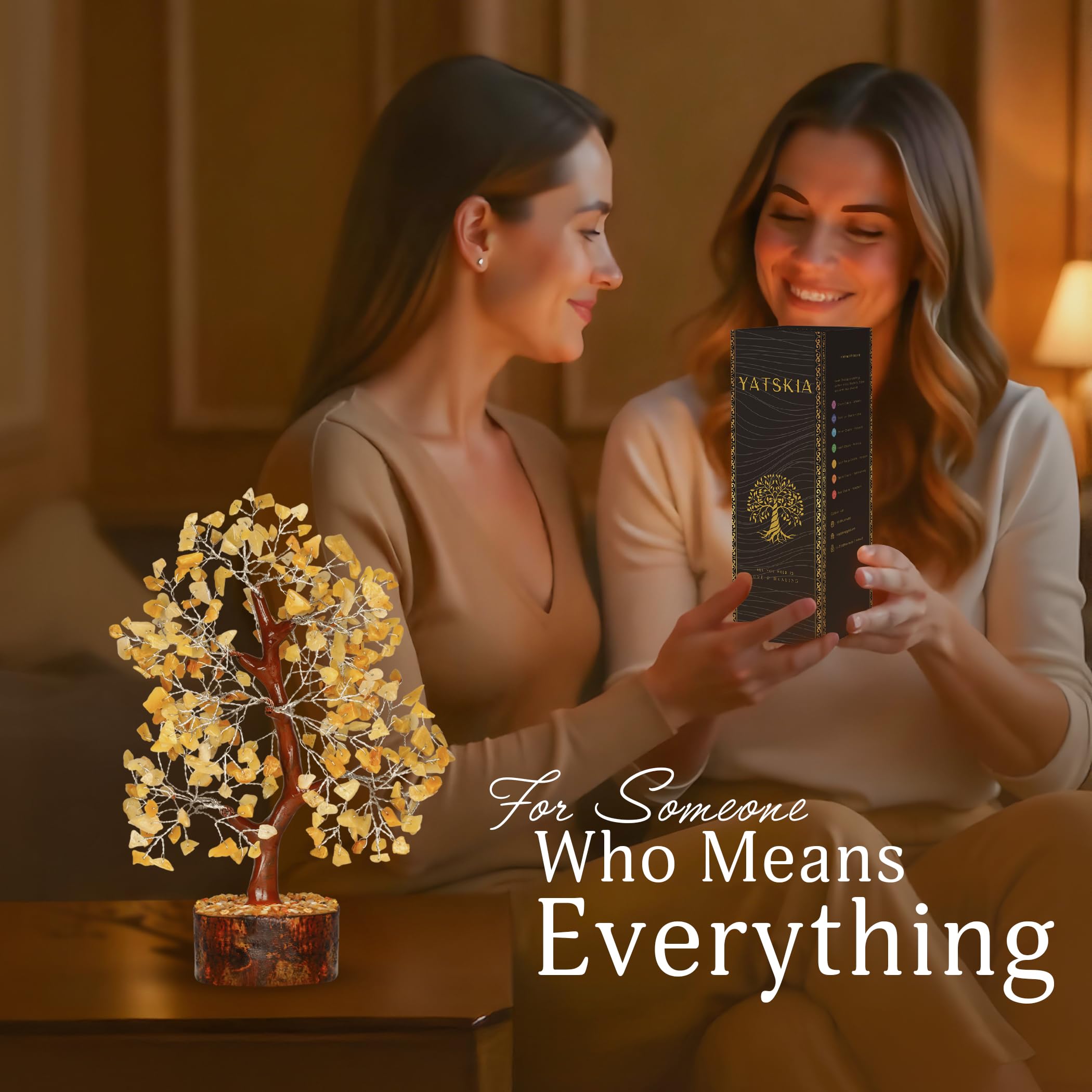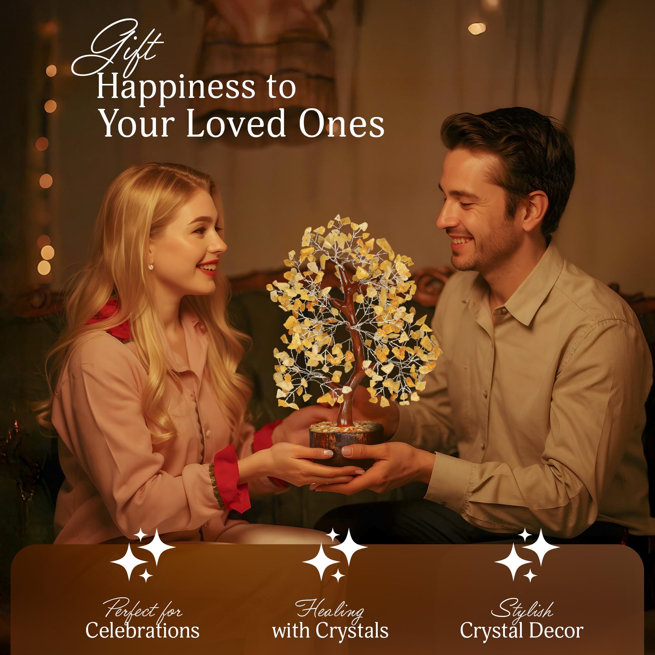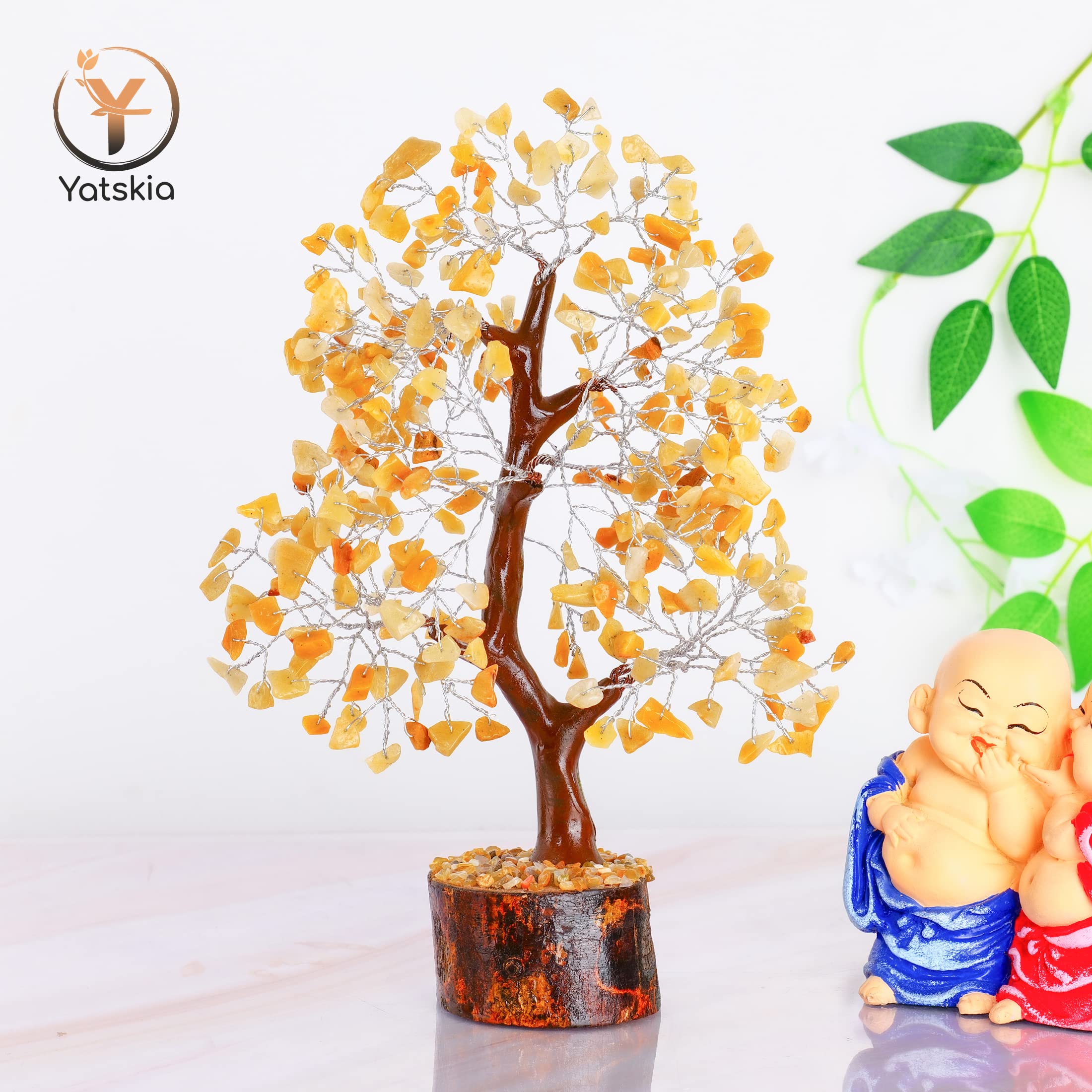 Yellow Aventurine Good Luck Charms Money Tree - Reiki positive energy divine tree, used in the feng shui rituals, is said to bring good luck & wealth. Also known as the wish-granting divine tree. This crystal tree has a variety of applications from wealth, healing to love and relationships. Feng Shui Buddhist bonsai tree promotes positivity, confidence and helps in removing the negative energy, thus bringing good luck to the surroundings.