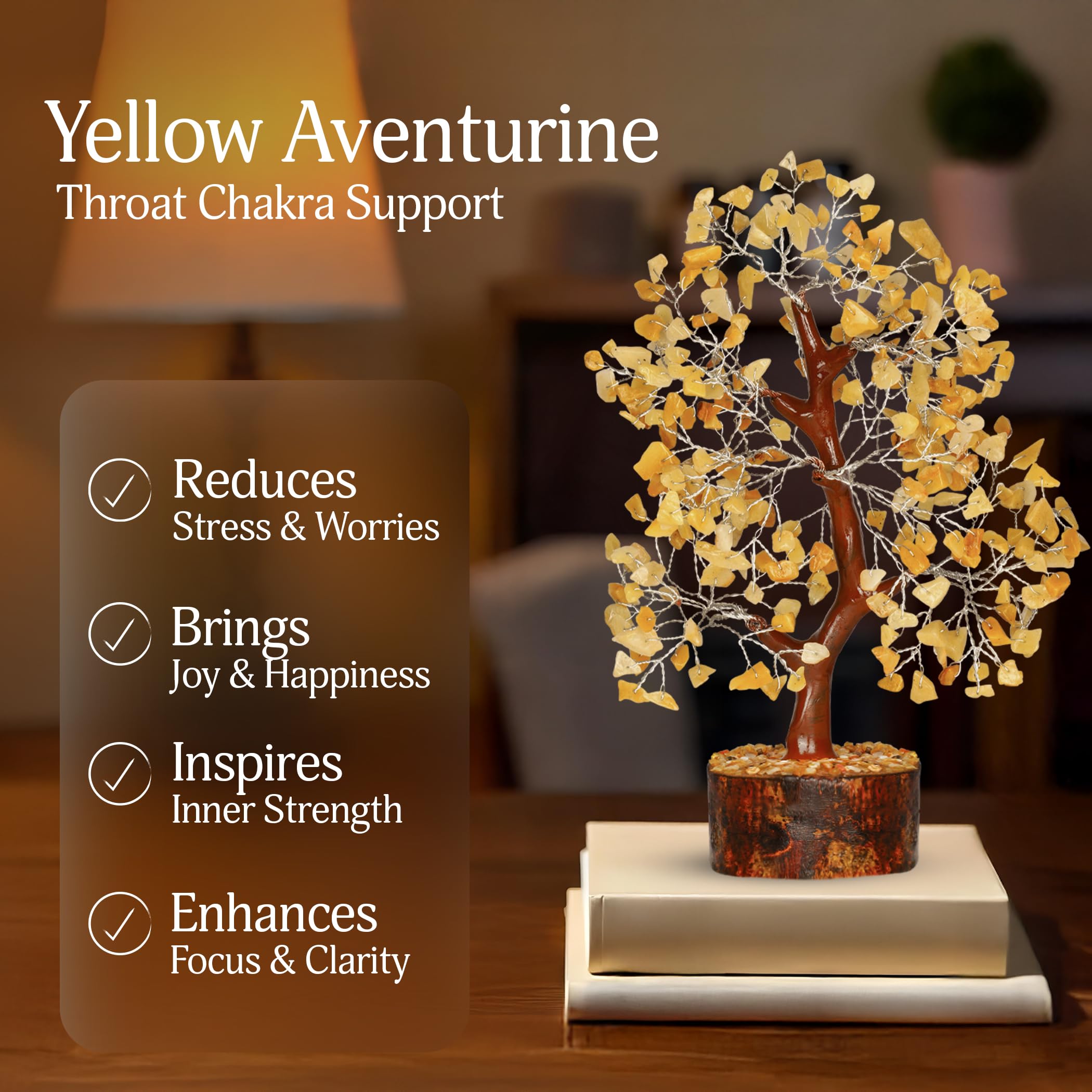 Yellow Aventurine Crystal Tree Properties - This yellow aventurine energy healing chakra tree is a decorative miniature tree that is made of natural yellow aventurine gemstones. These chakra trees are used as Vastu Enhancers and rectifiers. It is considered that this chakra tree possesses an energy that flows freely in abundance and can also attract positive energy to it. This tree can create strong vibrations with the solar plexus chakra.