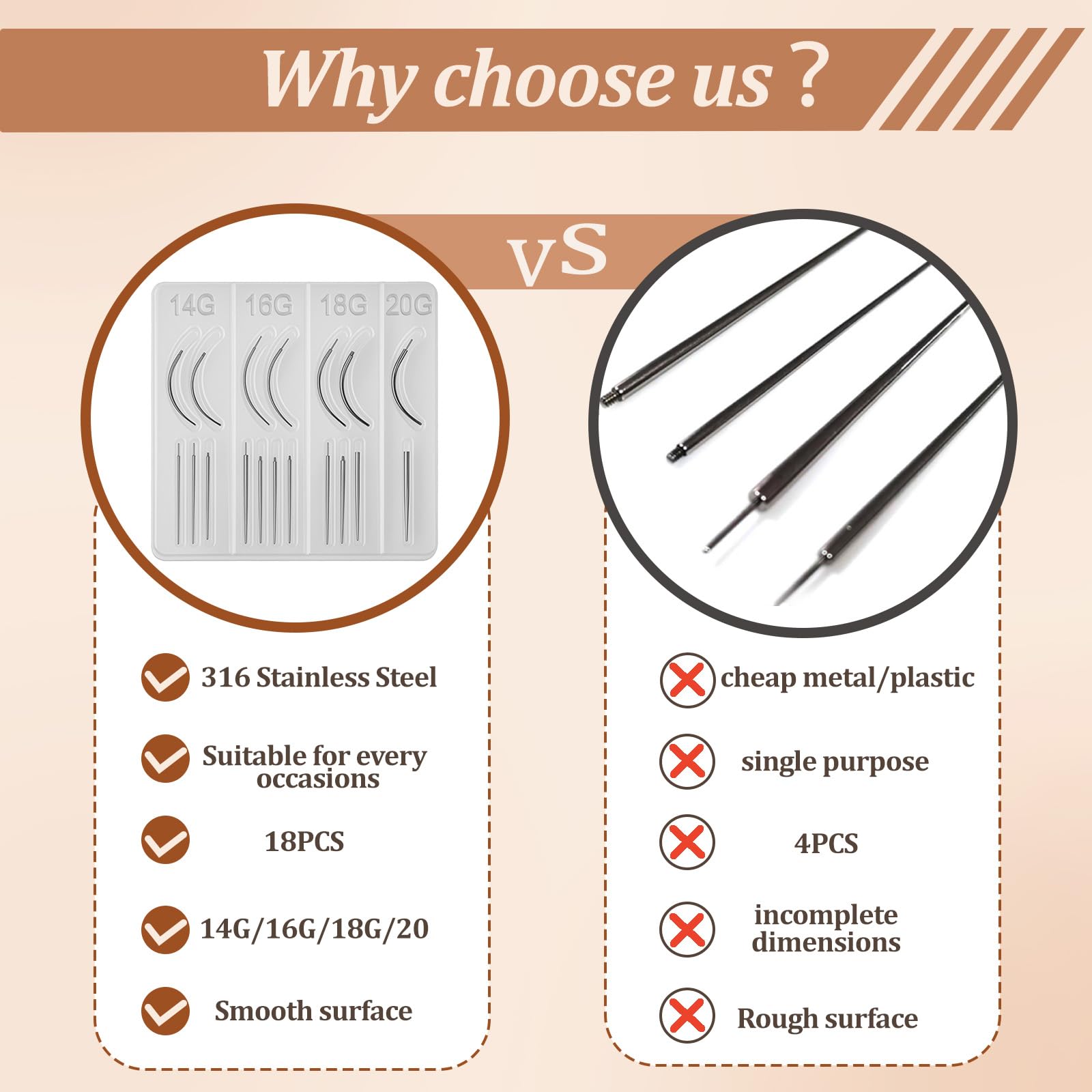 ✅All-In-One Piercing Changing Tool Set: This comprehensive 18-piece piercing insertion tool set includes 14G (1.6mm), 16G (1.2mm), 18G (1.0mm), and 20G (0.8mm) tapers, available in both straight and curved options with internal and external threads. Whether you need a piercing threader tool, a taper piercing tool, or a piercing stretcher, look no further.