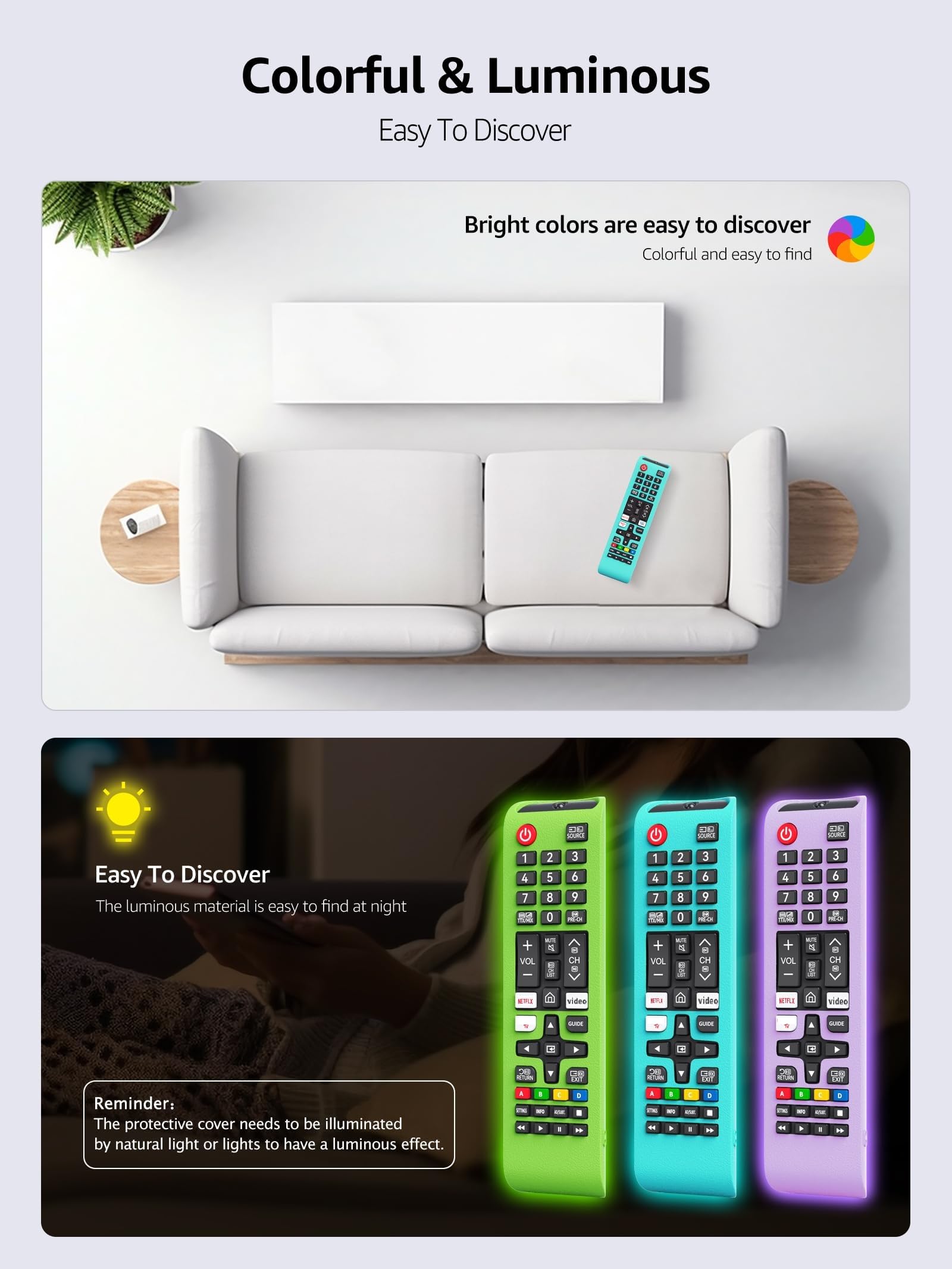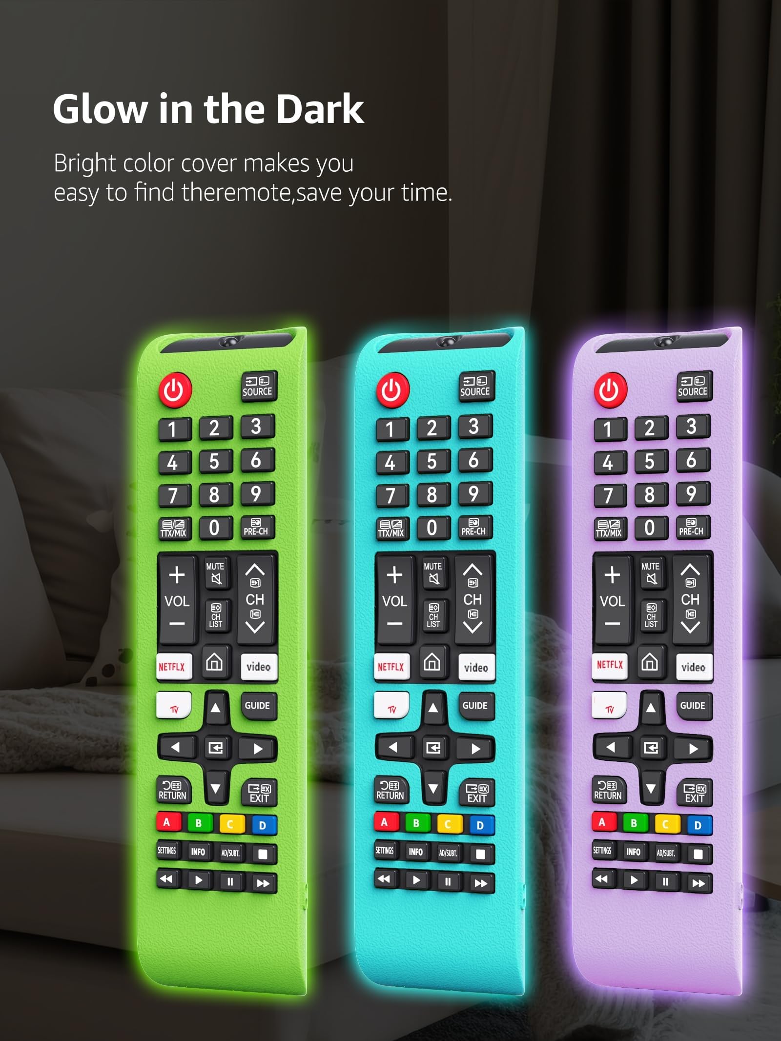 Full Protection: 3 cases are delivered to your hand together. This silicone remote cover is made of soft light weigh silicone against accidental drops. Glow in the dark cover for samsung tv controller is also a battery cover prevent the back cover and battery of the remote from being lost. Prevent the child from opening the back cover and playing it.