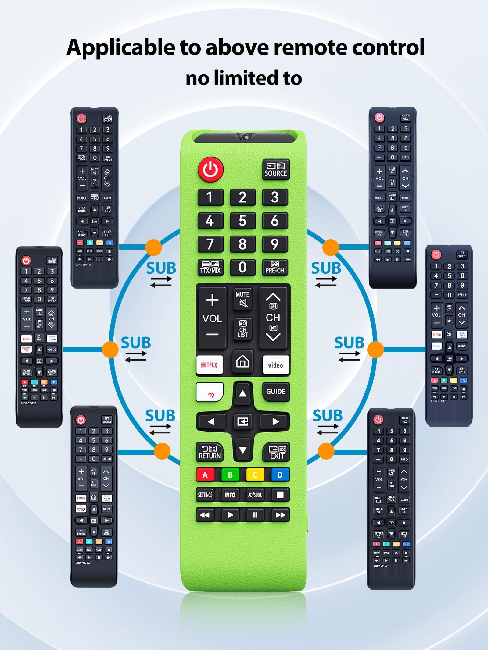 Compatible with Samsung Smart TV Remote: AA59-00786A BN59-01315B AA59-00741A BN59-01199F BN59-01301A BN59-01268D BN59-01041A AA59-00666A BN59-01289A BN59-01315A BN59-01042A AA59-00602A, AA59-00496A, 00816A, 00813A, 00611A, BN59-01247A