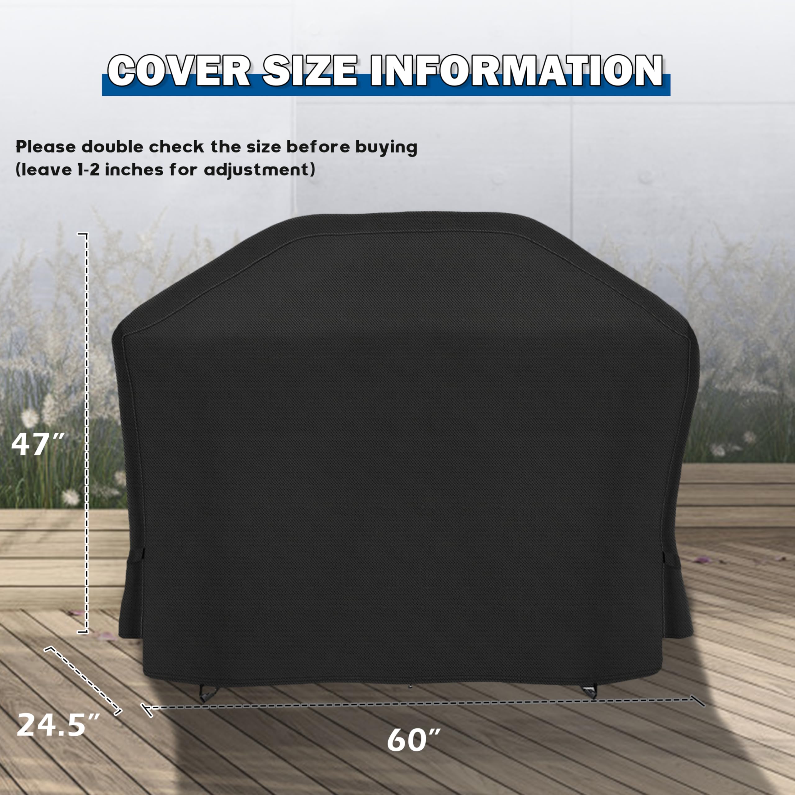 DIMENSIONS – The size of the griddle grill cover is 60"L x 24.5"D x 47"H, perfectly designed for Ninja PG301 propane griddle. Please double check the size of your griddle before buying