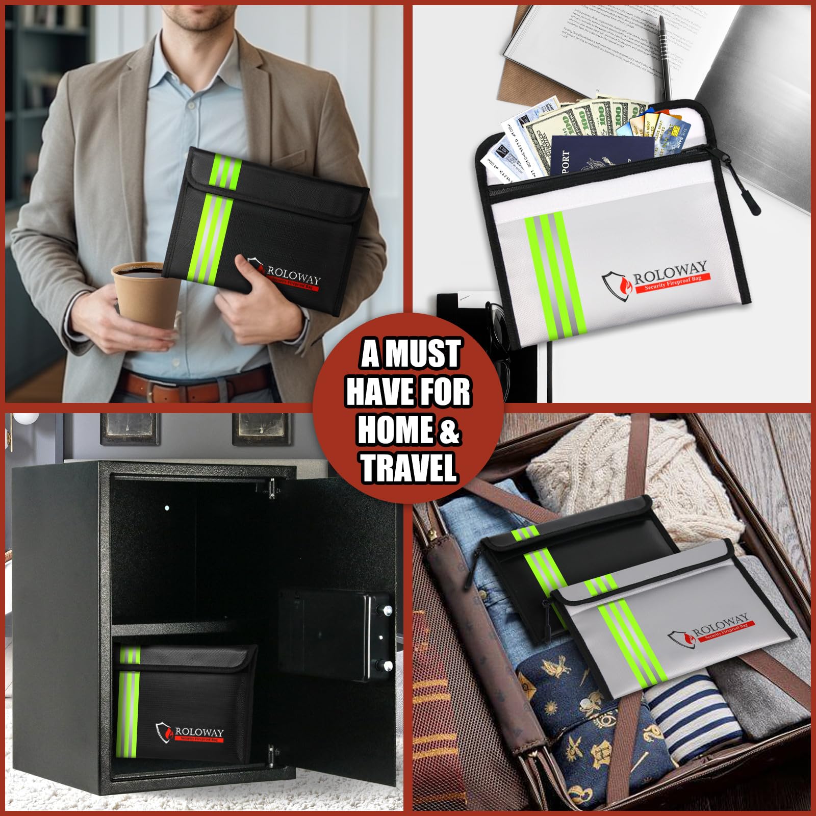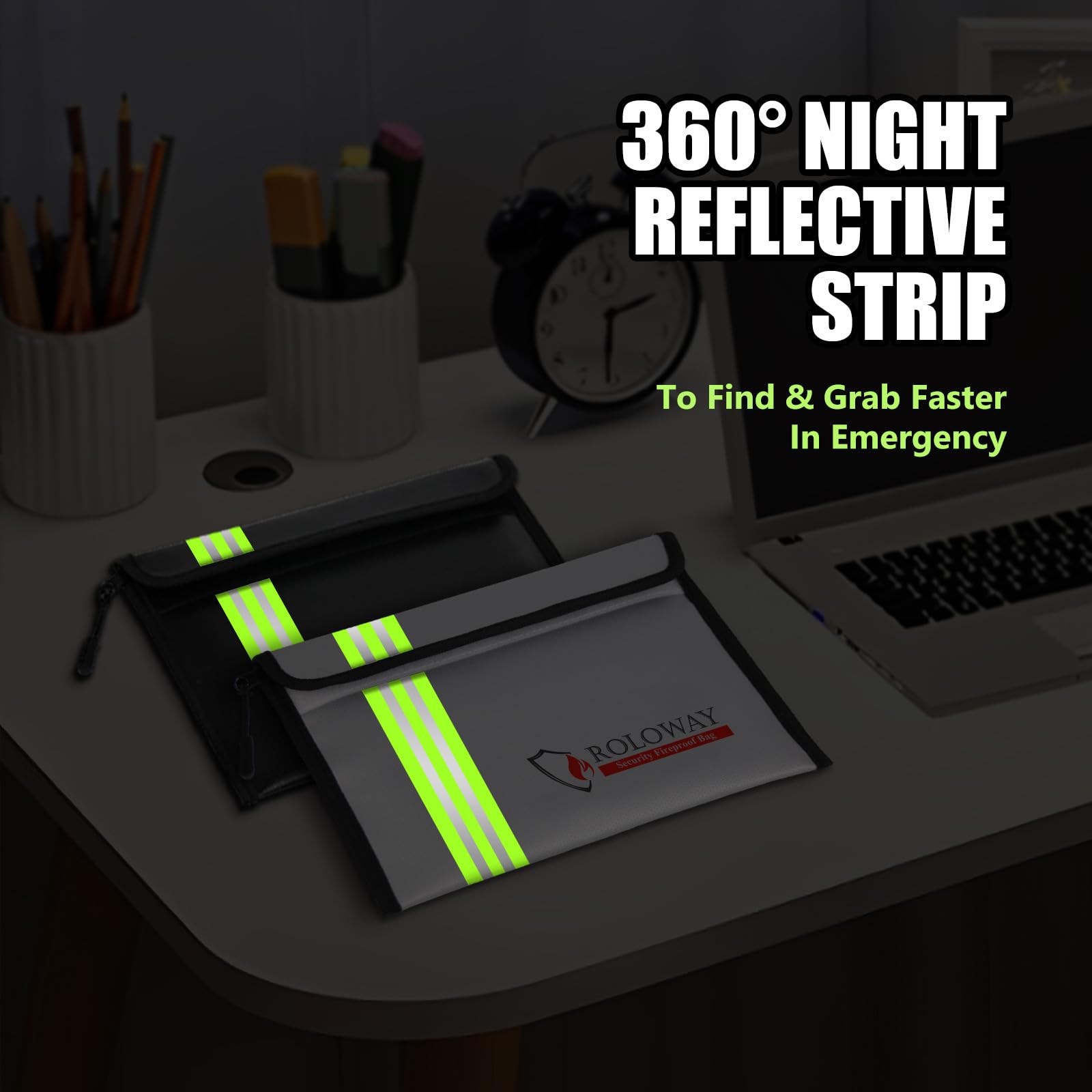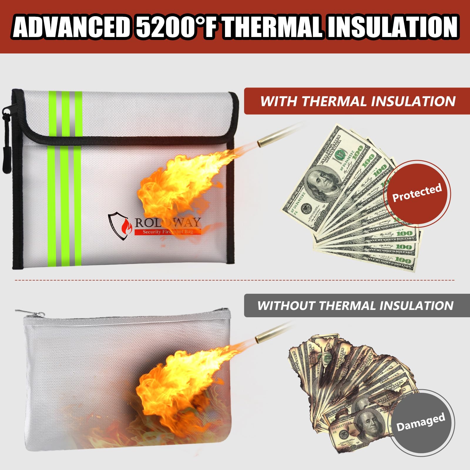 [REFLECTIVE STRIP & TRAVEL-FRIENDLY - EMERGENCY READY]: With the Reflective Strip, you could find our fireproof money bags very soon even at night, which means you could find & take your most precious items much easier and quicker. Coated with non-itchy water-resistant silicone, our fireproof bags allow direct handling without gloves. Designed to withstand all weather conditions, our fireproof bags ensure your cash, passport, and cards remain protected and are always ready for emergency Grab & Go.