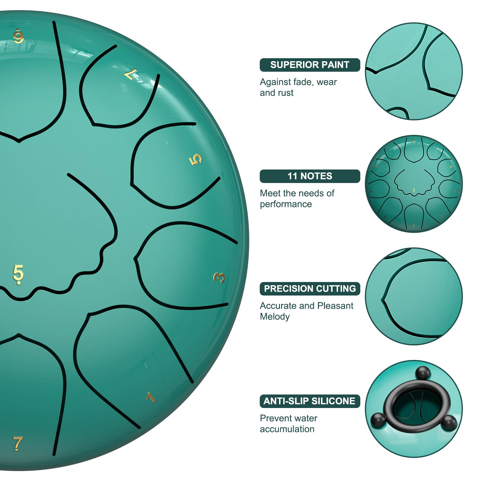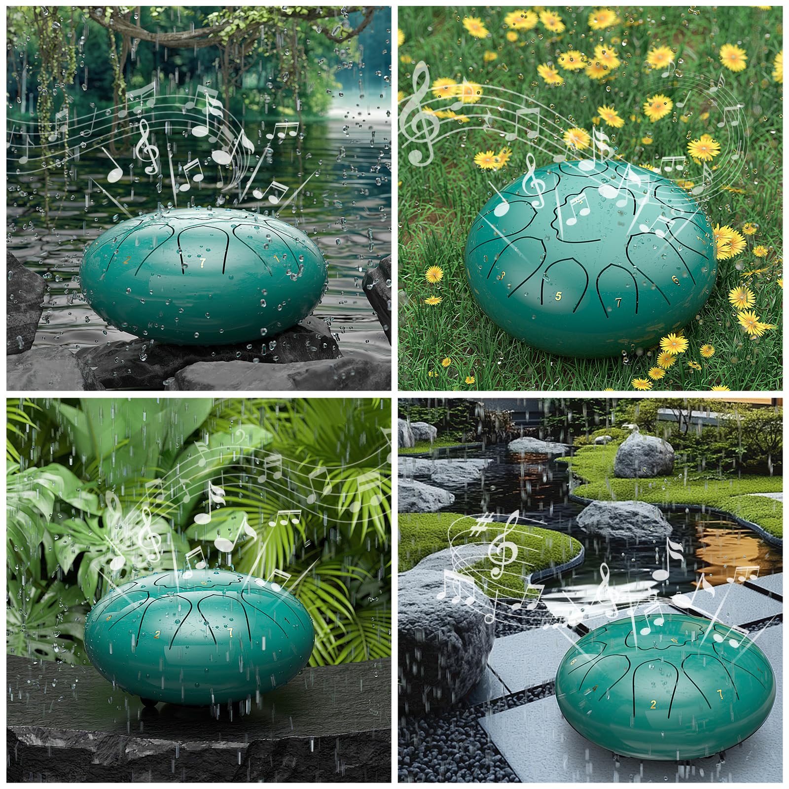 HIGH-QUALITY CRAFTSMANSHIP: Expertly crafted, this 8-inch chakra drum for rain is made from titanium alloy and coated with paint for exceptional corrosion and rust resistance, and can withstand various weather conditions. Each steel tongue drum is hand-tuned and precisely cut to ensure achieve accurate tones and harmonies.