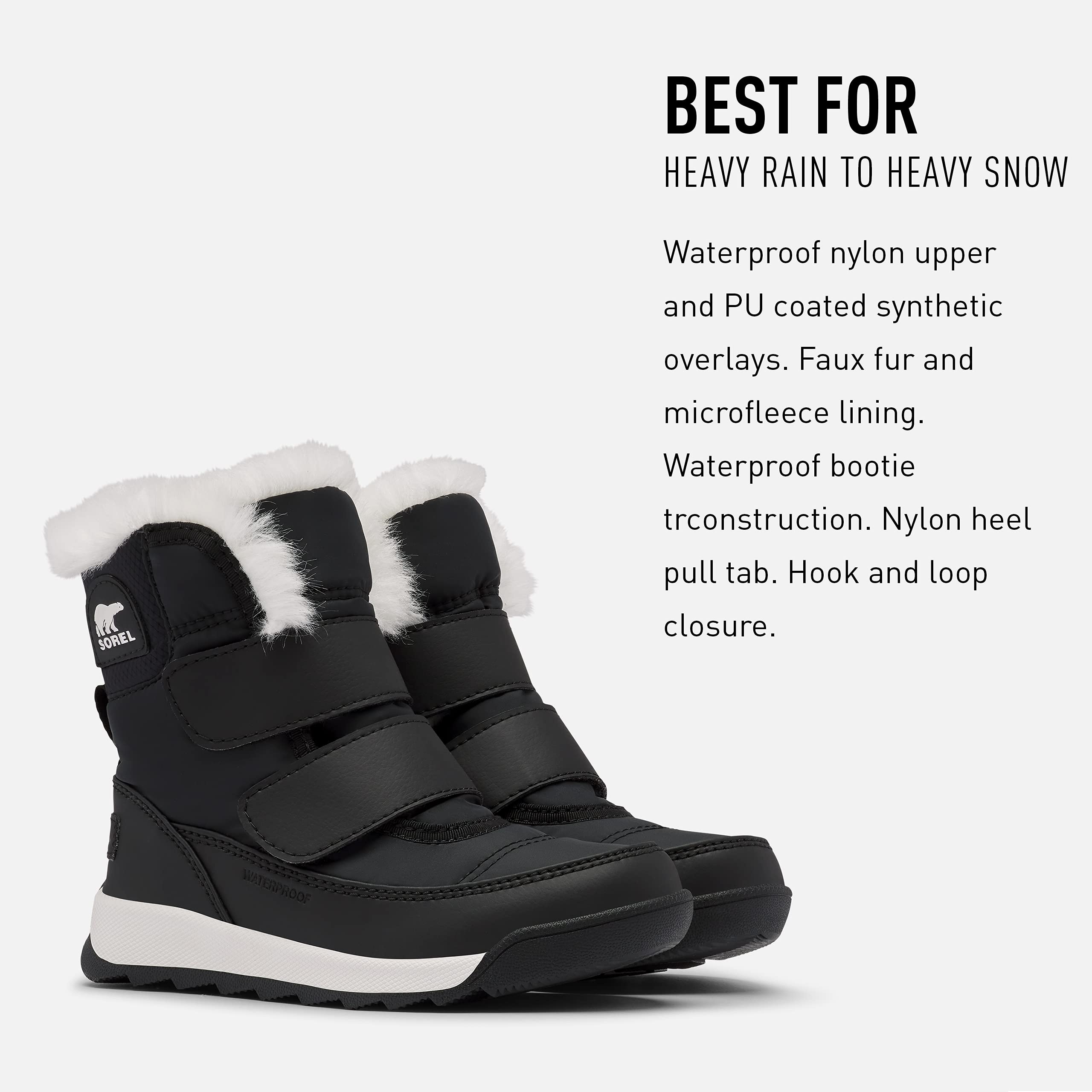 Description An easy choice for winter fun, these boots are cozy, waterproof, and oh-so simple to put on and take off. The durable upper is lined with faux fur and microfleece, plus 200g insulation for even more warmth. Combine that with the EVA footbed and high-traction rubber sole, and you've got the recipe for happy little feet.