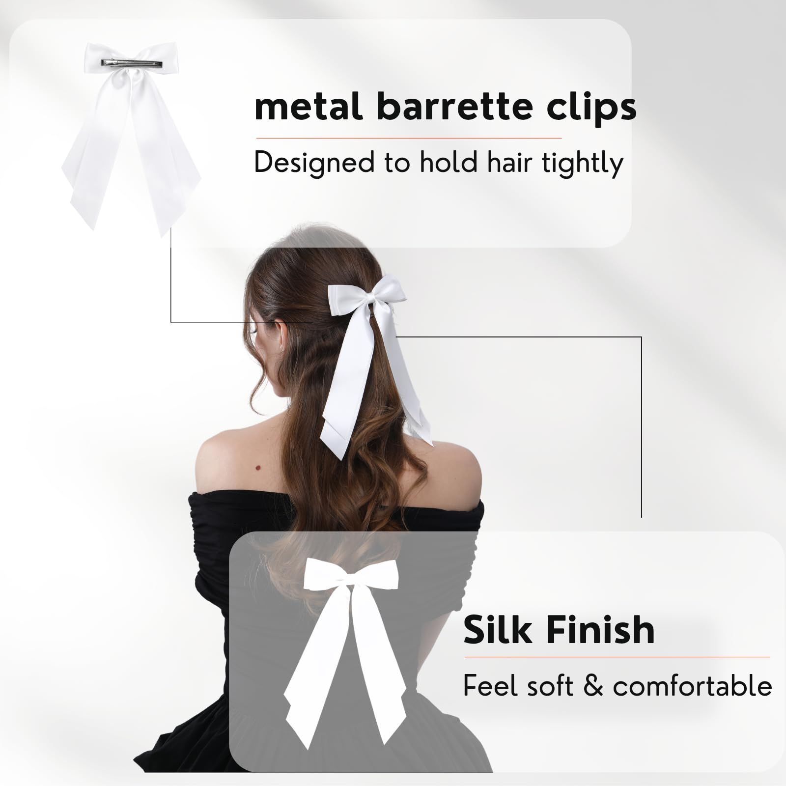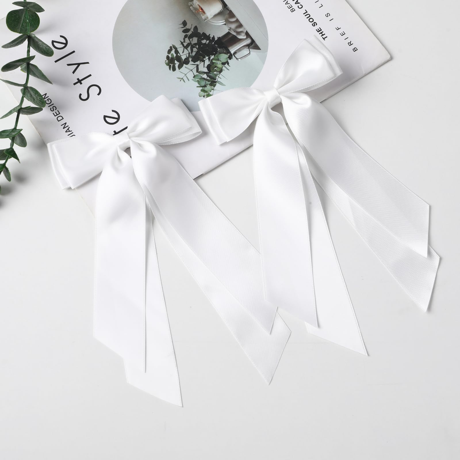 Silky Satin Texture – Soft, smooth satin fabric makes these white bows elegant and lightweight for daily wear.