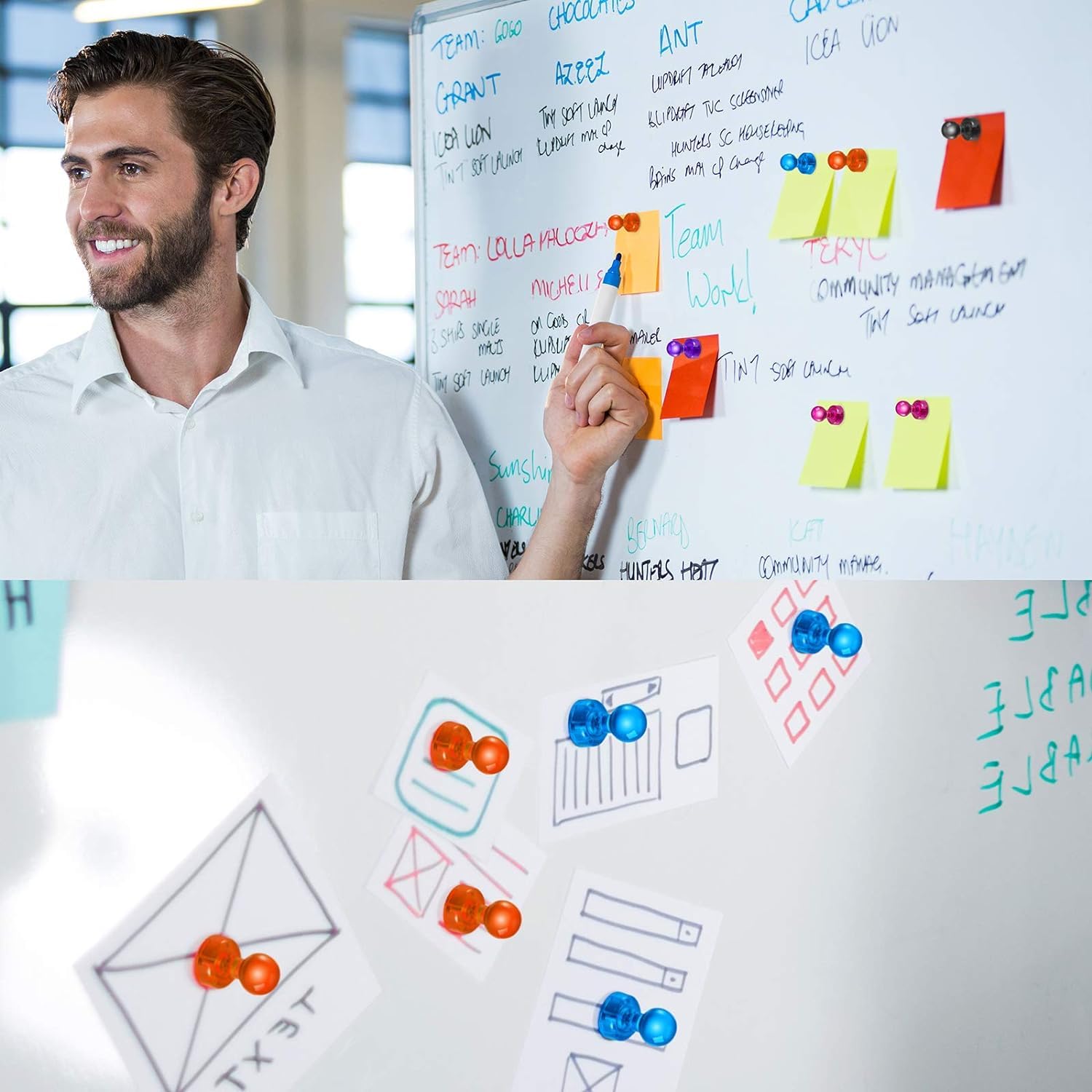 SMALL STRONG MAGNETS: Each powerful magnet holds up to 11 sheets of paper on any metallic surface. No more sliding papers with cheap magnets. These push pin magnets are tiny too so they won't cover up exact things you want to display.