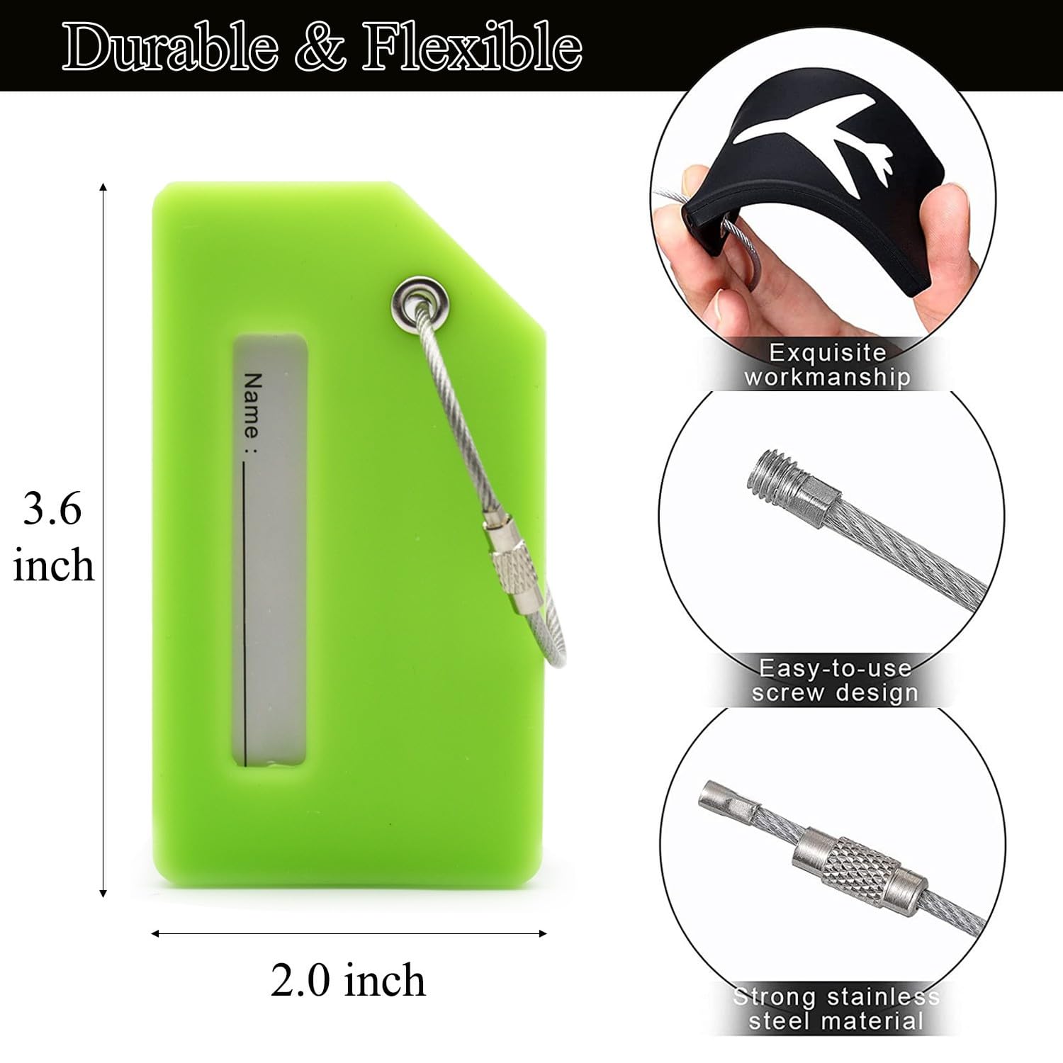【Flexible & Durable】Our luggage tags Made of quality durable Silicone ability to bend without breaking. The reinformed metal hoop will ensure that your bag tags will be attached to your belongs all the time.