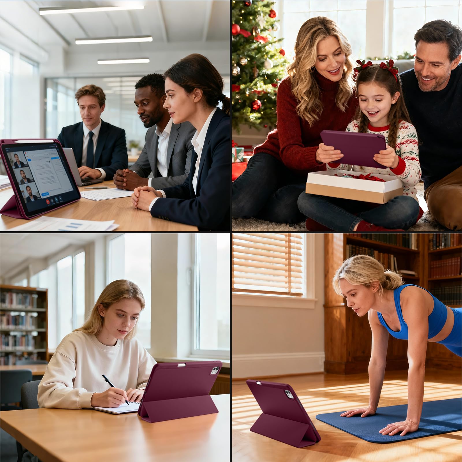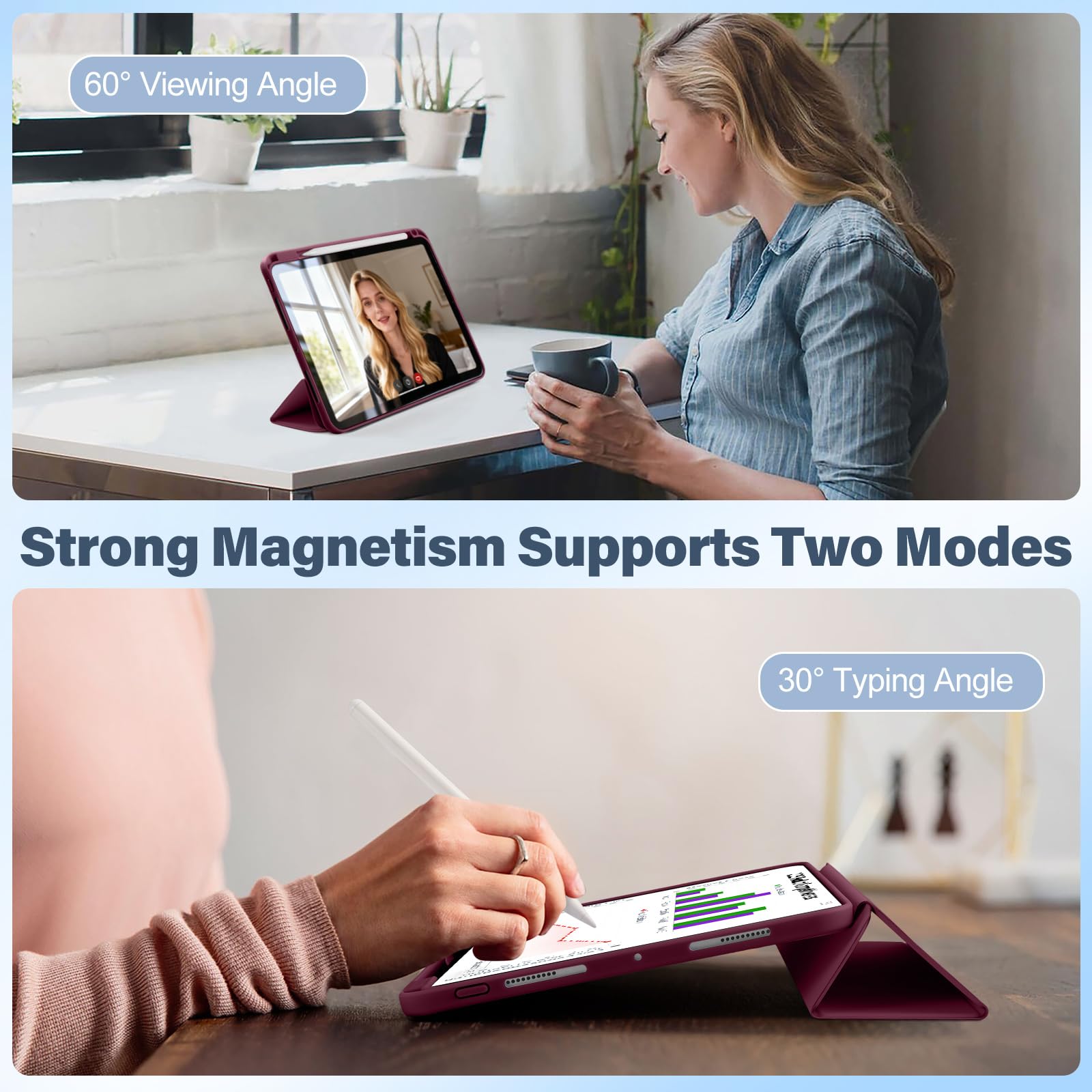 【Typing Angle/Viewing Angle】This apple iPad Pro 11 inch case features a tri-fold design, and when folded, the triangular stand provides exceptional stability. The case offers two daily-use angles: the 30° angle is ideal for drawing, typing, or chatting, while the 60° angle perfectly suits scenarios like watching videos, video calls, and handling emails.