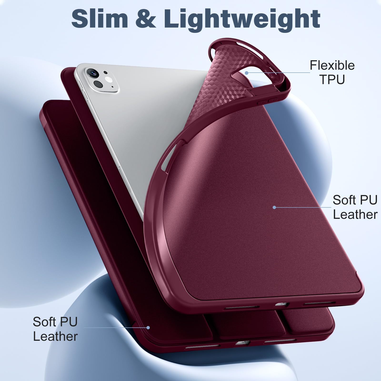 【Full Protection】The outer layer of the iPad Pro 11 inch m5 case is crafted from PU leather, offering a soft and comfortable feel. The inner shell frame utilizes shock-absorbing TPU material, providing exceptional drop and impact protection.