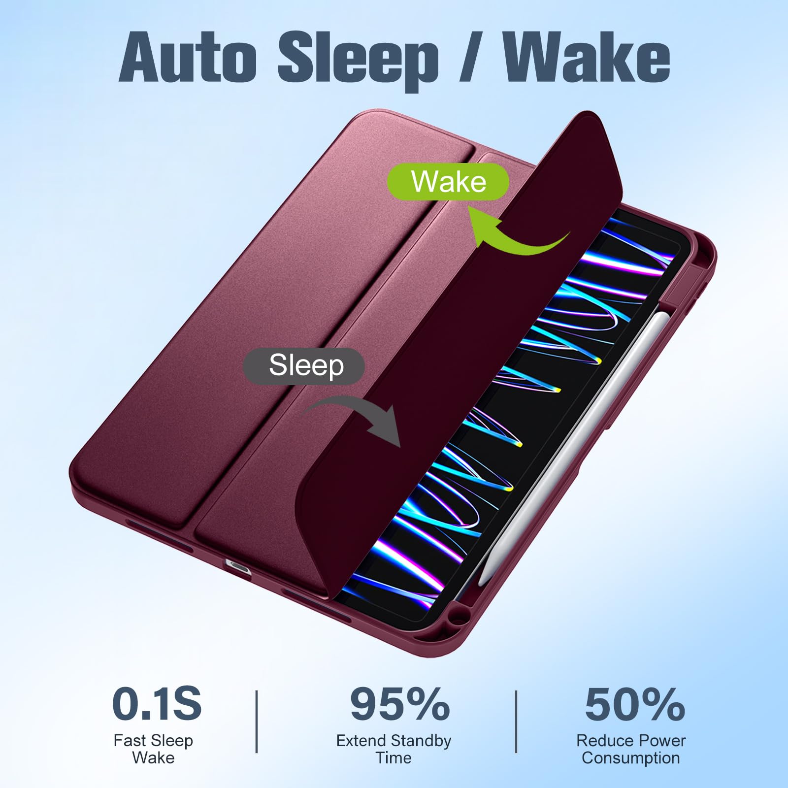【Auto Sleep & Wake 】This iPad Pro m4 11 inch case supports auto wake and auto sleep functions, enabling significant power conservation and extended battery standby time. As a result, charging frequency is drastically reduced, enhancing overall device efficiency.