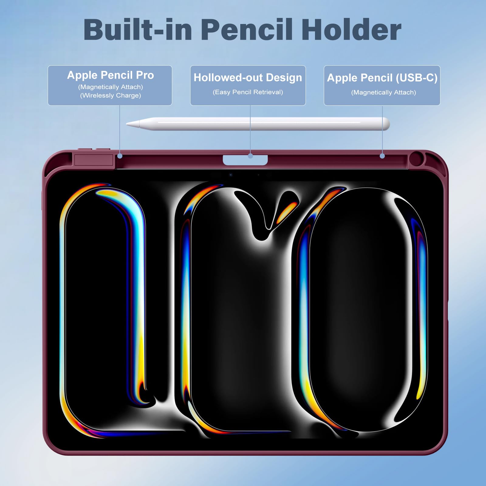 【Built-in Pencil Holder】This iPad Pro m5 11 inch case features a built-in pencil slot designed specifically for the Apple Pencil, allowing for convenient storage of both the Apple Pencil Pro and Apple Pencil USB-C. It ensures easy access while effectively preventing loss or damage. (Note: Apple Pencil is NOT included)