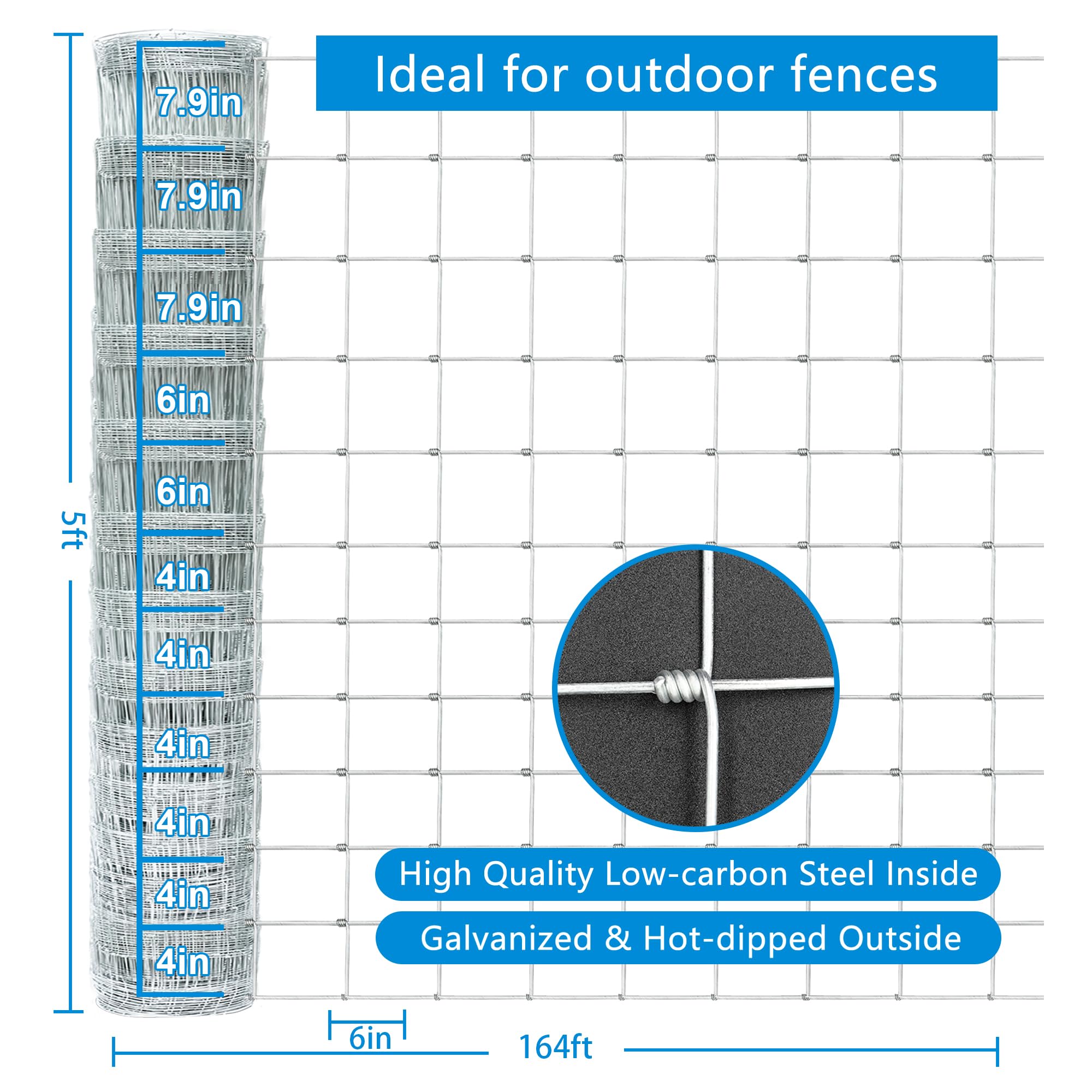 Wide Applications: Farm fencing is widely used for various animals, such as cattle, horses, sheep, dogs, and deer. It is ideal for protecting livestock, poultry, gardens, and pets.