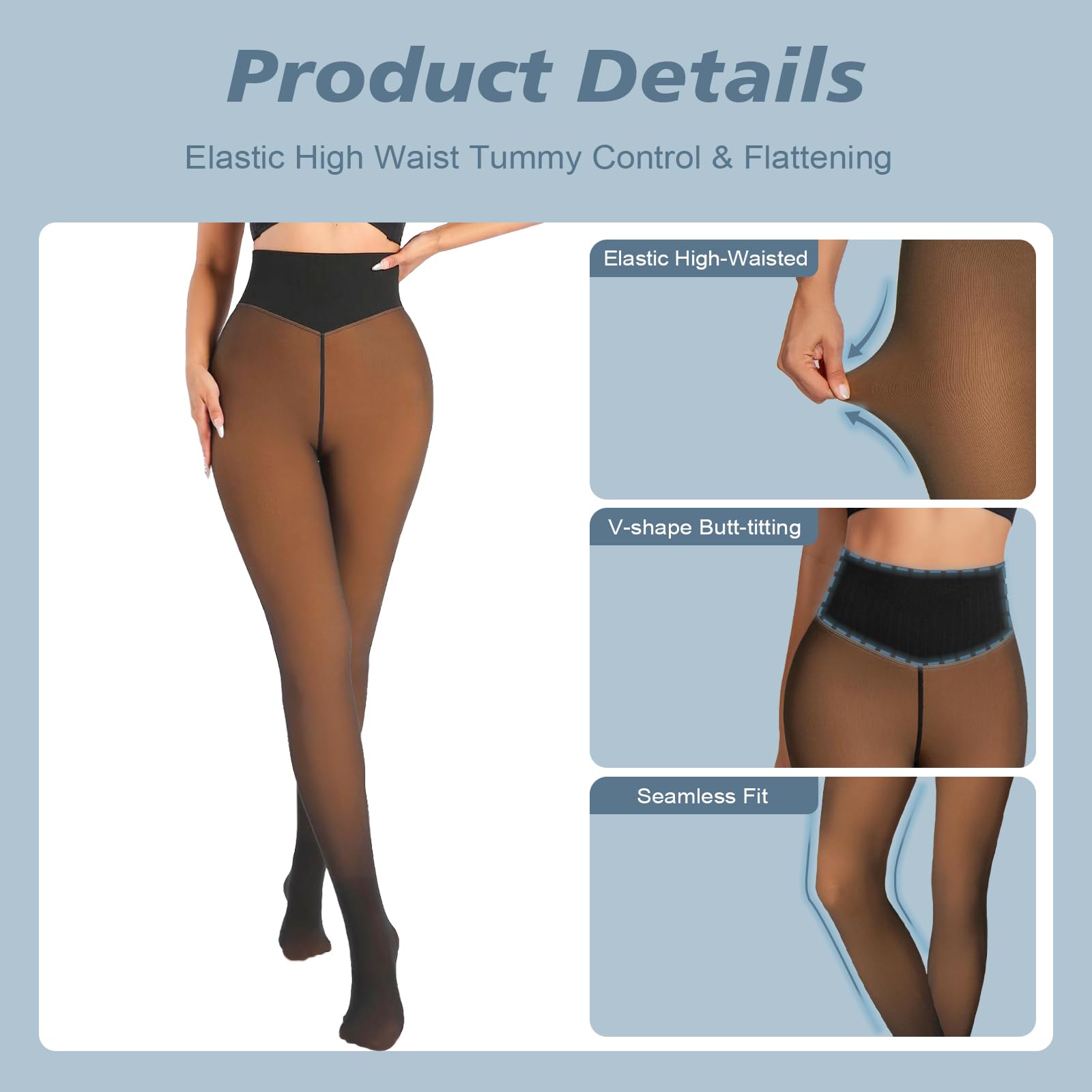 【Slims And Shapes Your Body】:Warm fleece pantyhose comfortable and flexible high waist design flattens your tummy for a trim look and holds your tights in place.Pantyhose leggings enough stretch hugs your legs without the appearance bunching or sagging.