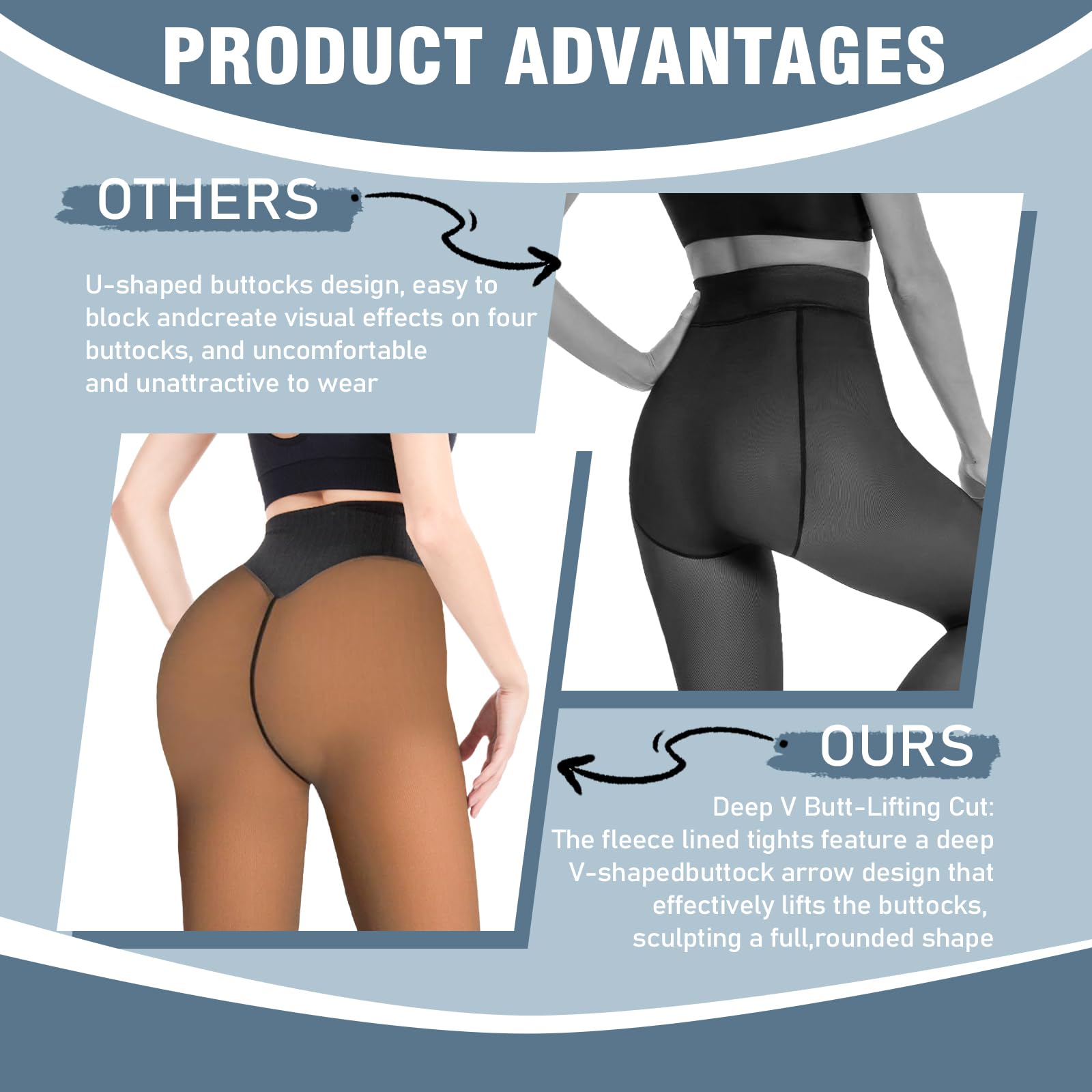 【Fake Translucent pantyhose】:This translucent fleece leggings are fashionable. The winter tights look like a sheer stocking from the outside but fill with warm fleece in the inside.You wear this fake translucent tights in autumn and winter, not only to show your sexy figure, but also to keep you warm.