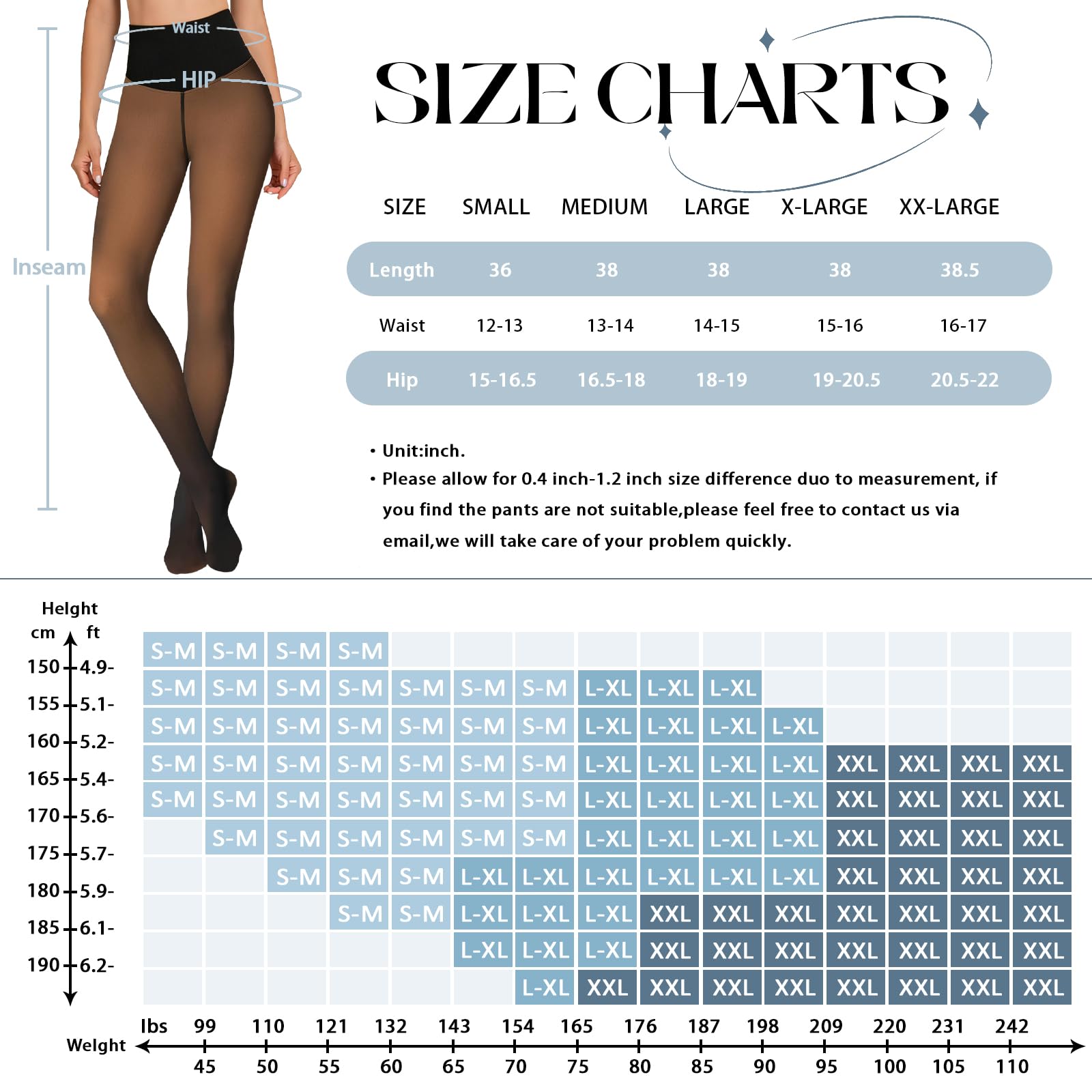 【Size】: Fake Translucent Women Tights has four sizes of S, M, L and XL,XXL. which can fit different sizes and body types.And You can refer to the actual size of the size chart on the left to choose the right size. Sheer tights are suitable for women of all sizes.