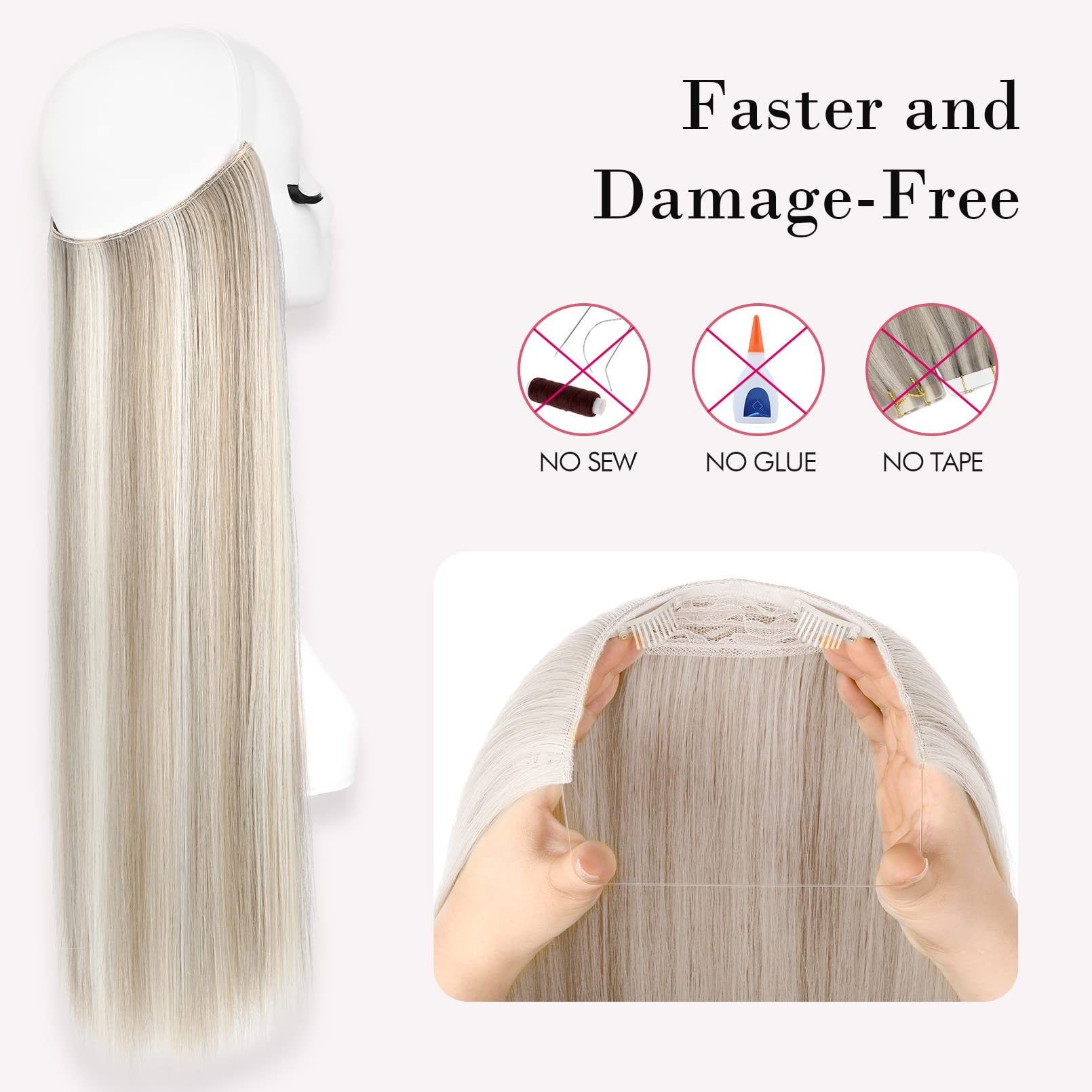 Easy to Apply: No tape, no glue, no sew, only need to position the easy wire hair extensions over your hair like a headband, taking less time for instantly thicker and longer hair without extra help in few minutes