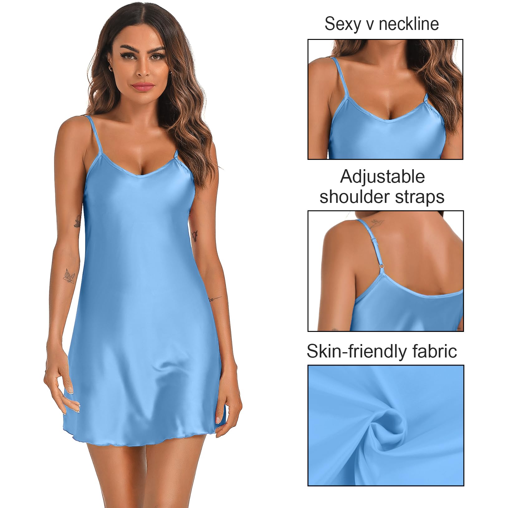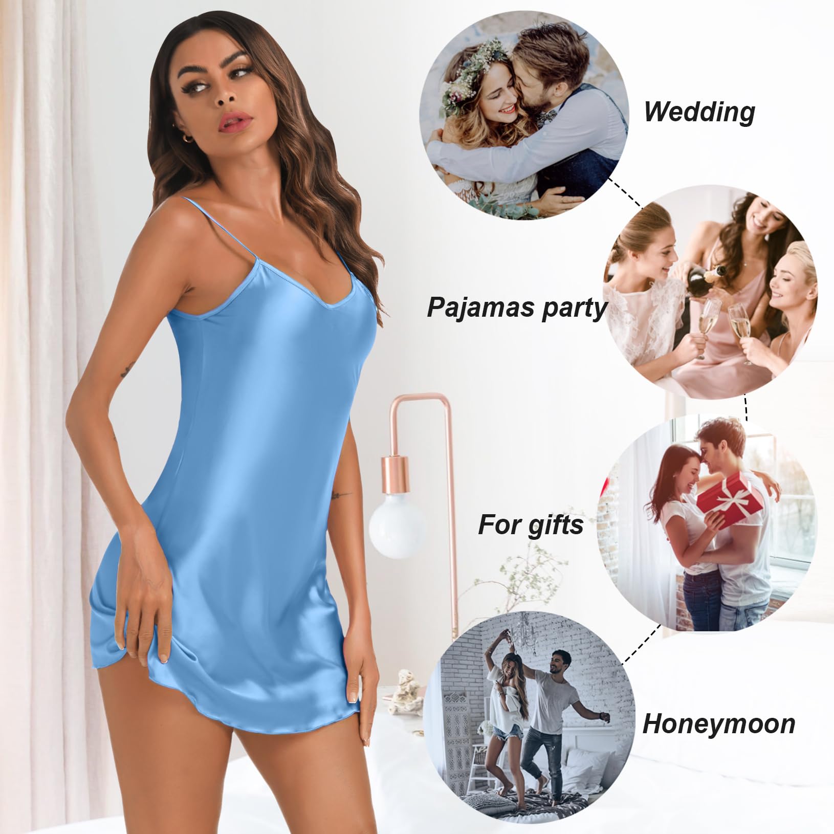 The satin nightgown /silk slip dress/sexy lingerie/nighty for women is buttery smooth with a feather-light drape and flow soft and snug to against your skin, perfect for sleepwear, nightwear, loungewear, honeymoon, casual wear, pajama party, and Halloween costume