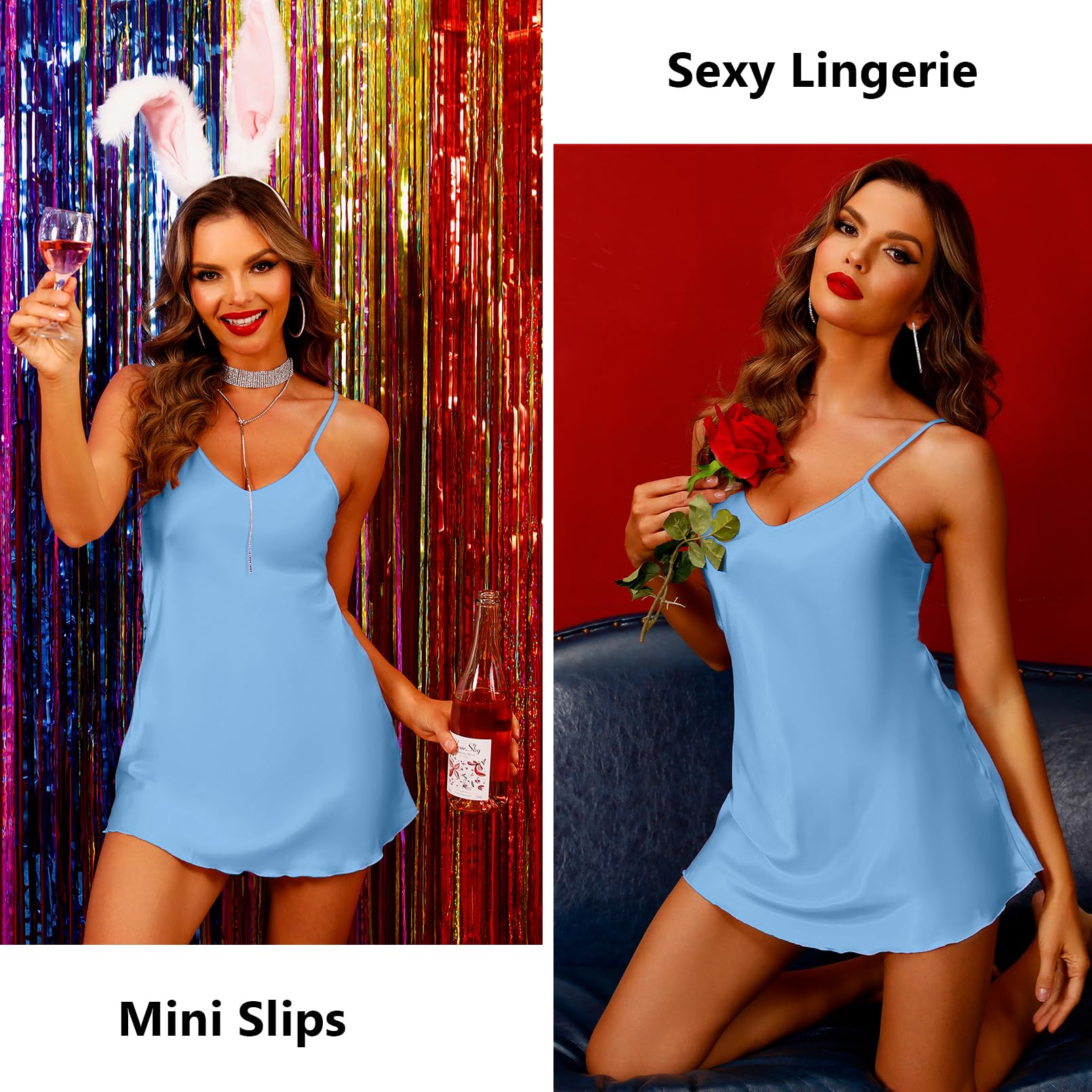 Features: Satin slip chemise nightgown with adjustable spaghetti strap for a good fit, sexy v neck, ruffle wave hem,a-line style, these chic designs make this satin mini slip dress looks more elegant and charming