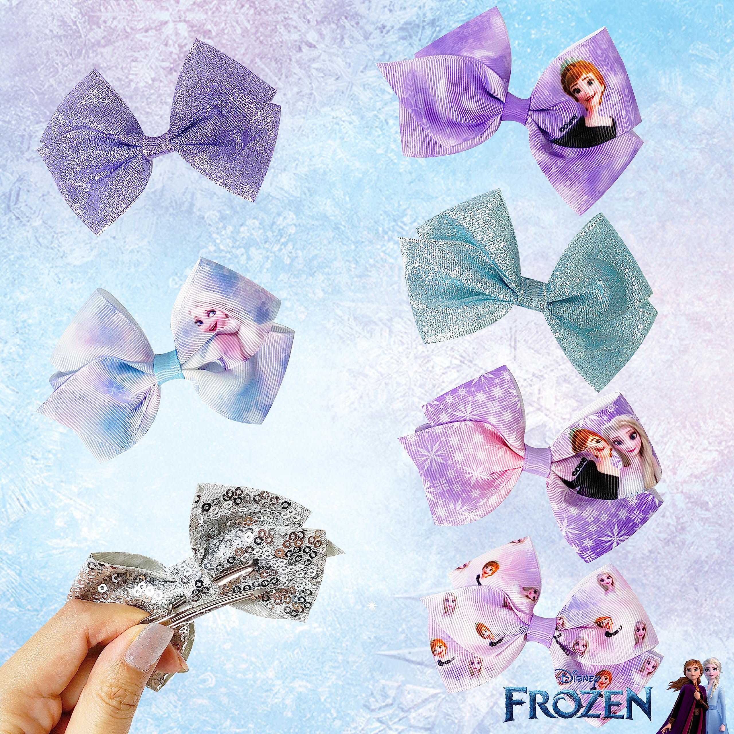 In The Box: Luv Her Frozen 2 Girls 7 Piece Princess Hair Bow Set includes 7 multi colored hair bows on a card ; high quality non-slip grip hair ties with smooth edges to minimize pulling and hair damage for a comfortable and pain free hair styling