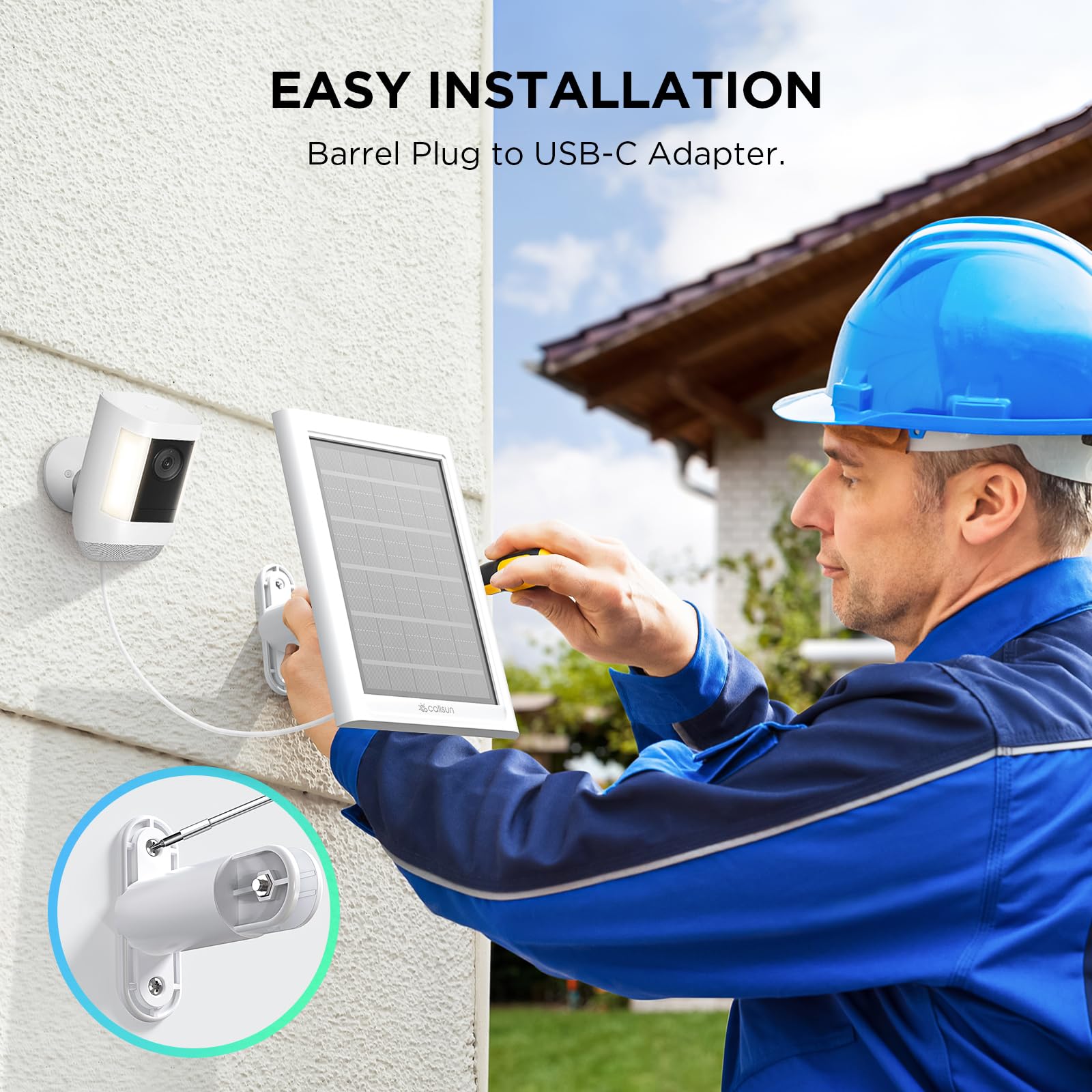 【Complete Package & Warranty】Includes 1×2.4W solar panel with DC barrel cable, 1×mounting bracket, 3×screws, 3×wall anchors, 1×Ring DC to USB-C adapter, and 1×user manual; backed by a 12-month warranty and 30-day money-back guarantee, making this outdoor camera solar panel practical and thoughtful for home security users.