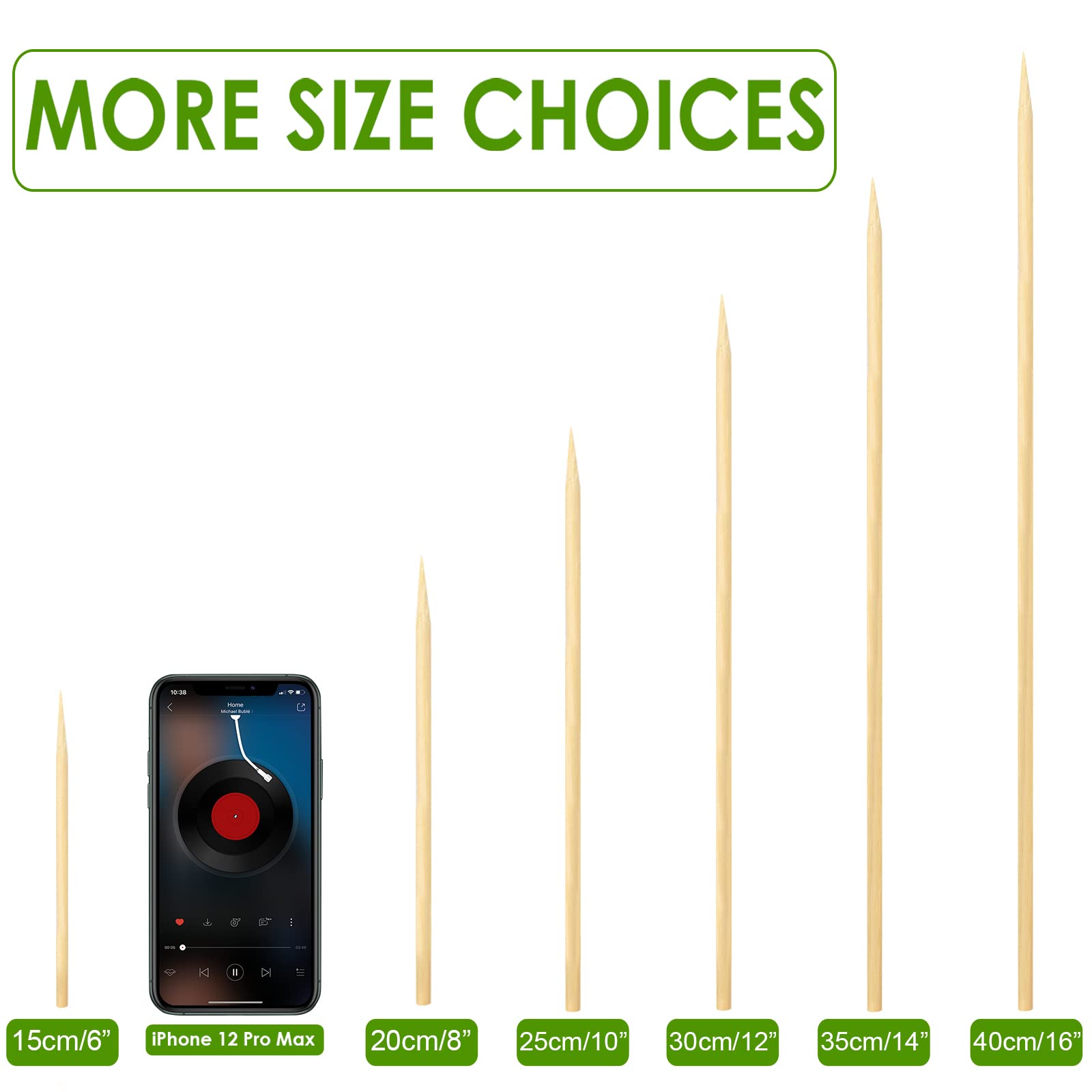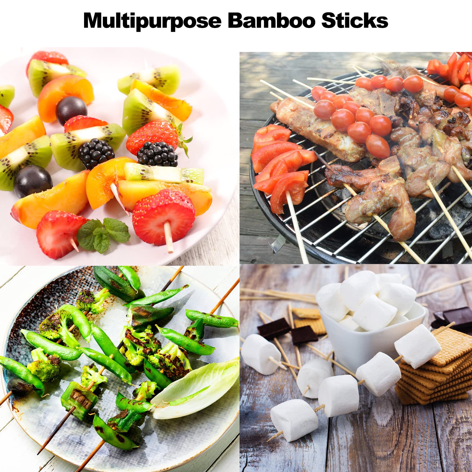 Multi Occasions Use - Wooden sticks are an indispensable choice for barbecue party, camping trips, holiday events, wedding. And these wood skewers are pefect tool for meat, poultry, seafood, veggies, cheese, cake decoration, cupcake toppers,fondue and even plant supports!