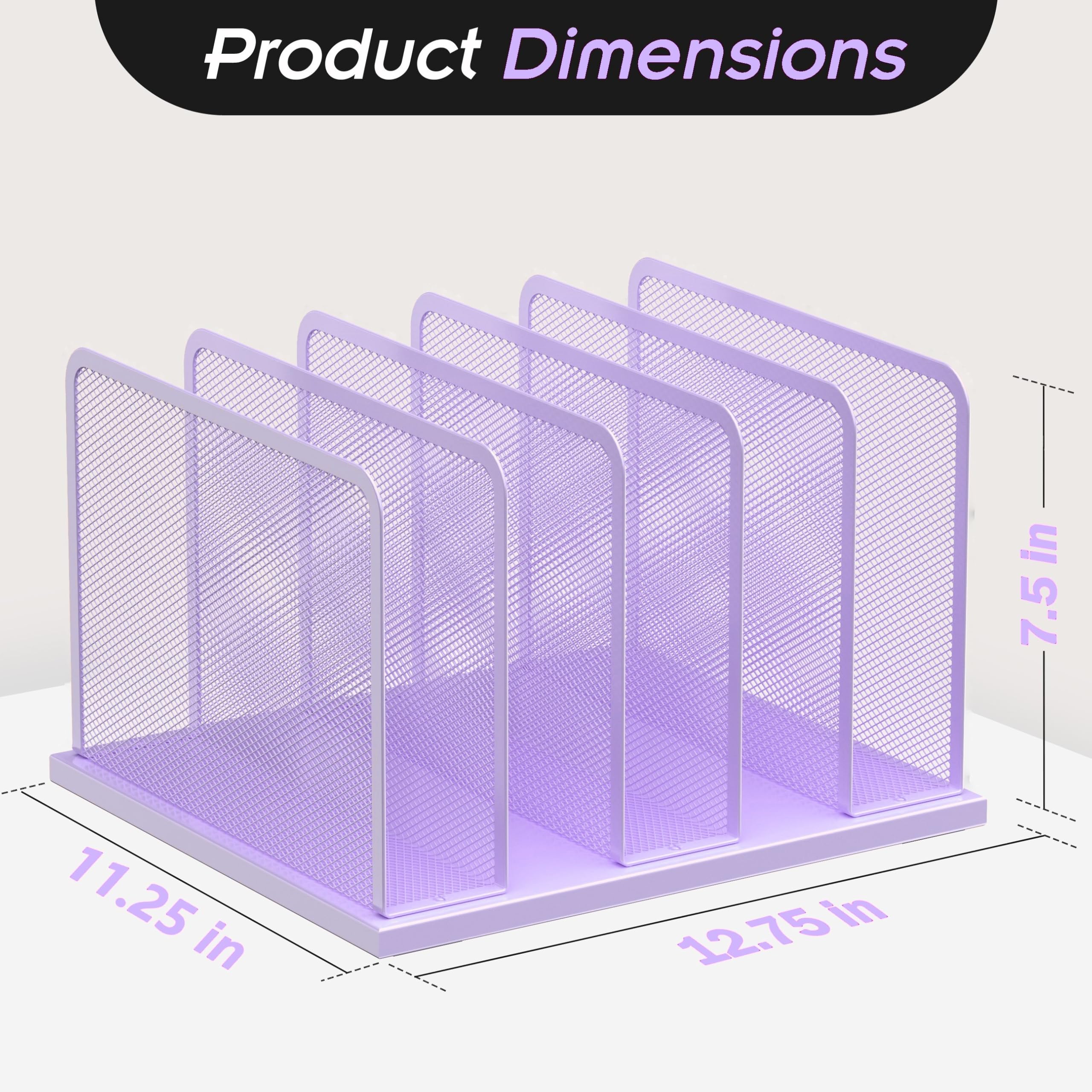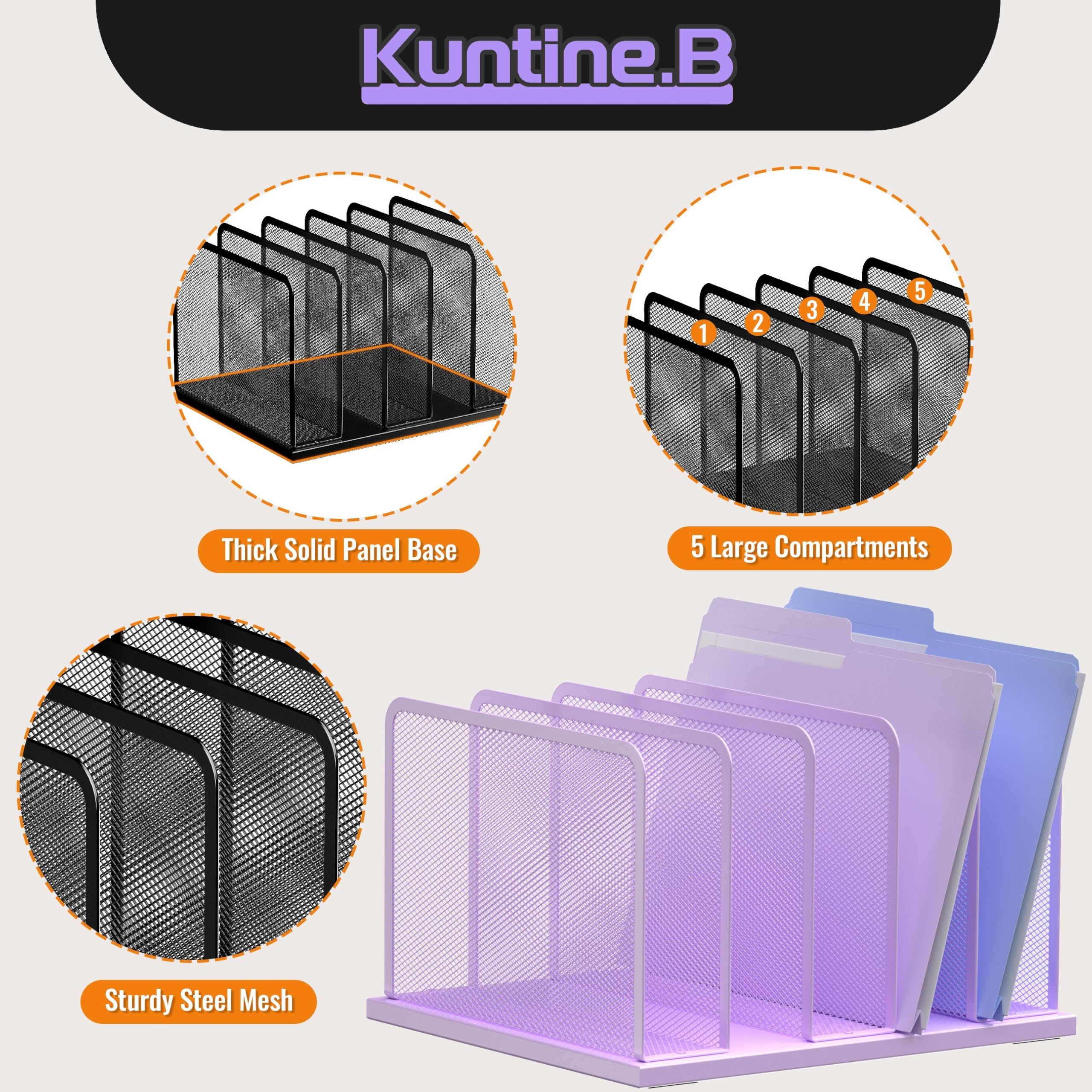 Kuntine.B Desk File Organizer Upright Mesh Desktop Organizer File Sorter Office Organization File Holder for Home, Office & Classroom (Purple, 1 Pack 5-Section)