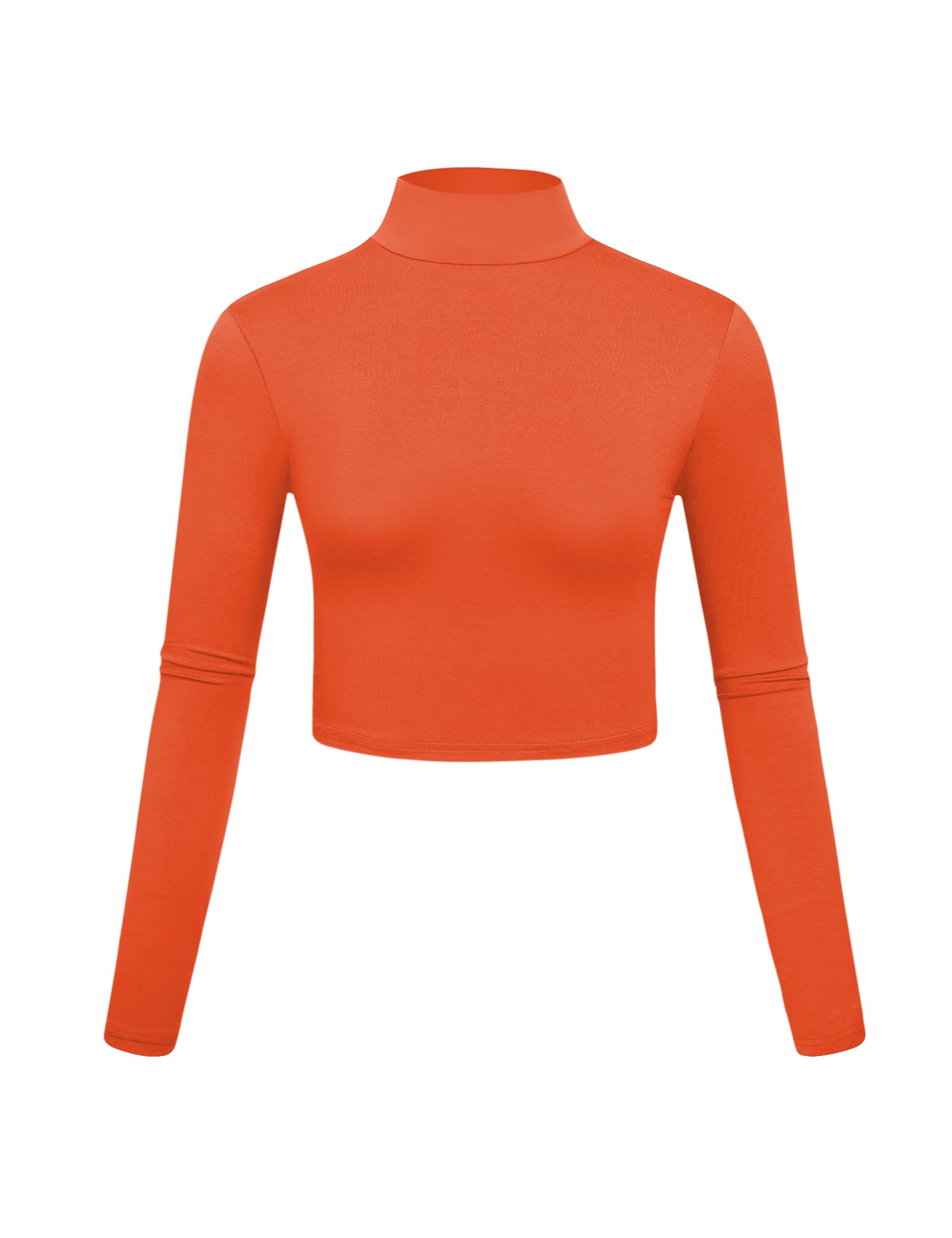 Style: Design with 2.4in mock turtleneck collar, the neck can easily stay up but not choking. Slim fit crop top hugs your curves perfectly. Long enough and wonβt shows your sports bra when workout.