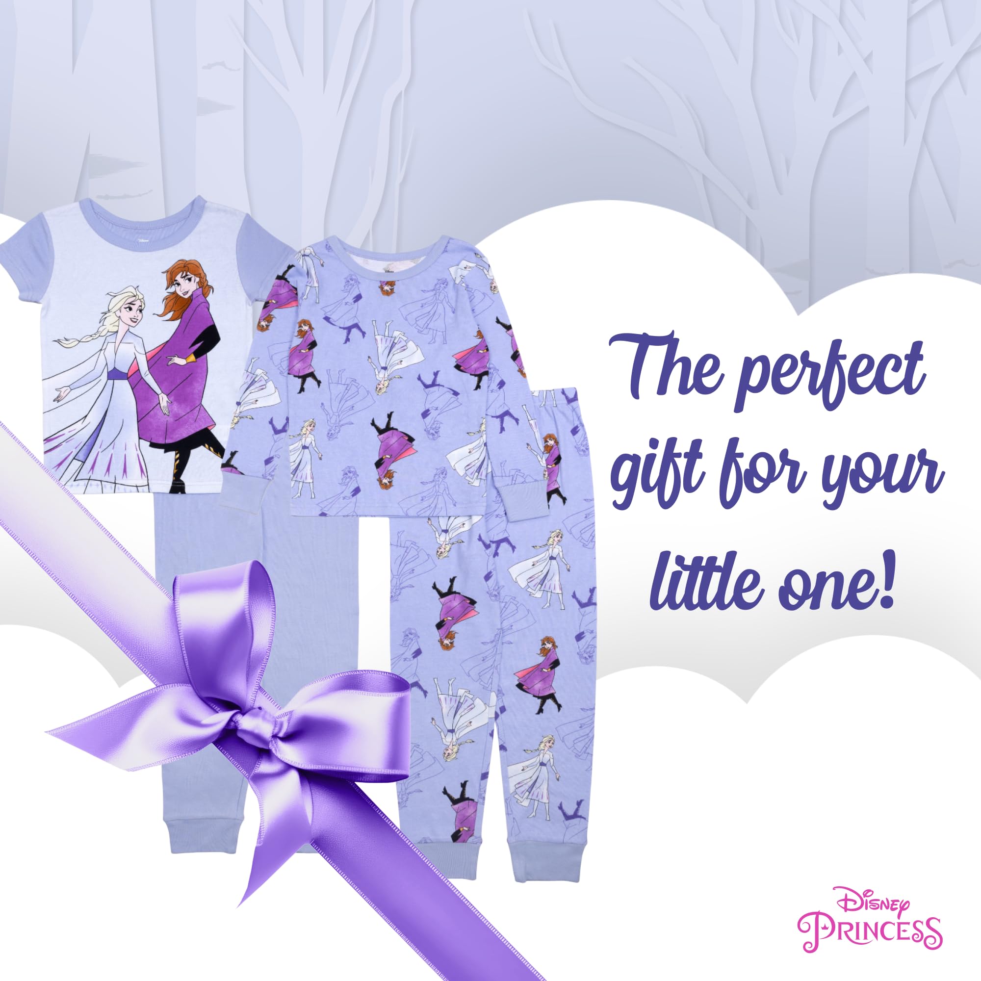 DISNEY PAJAMAS FOR GIRLS: These fun 4-piece pajamas for girls include a short and long sleeve top, and 2 pair of long pants that feature charming graphics and bright colors. They’re available in a variety of sizes to fit your little one.