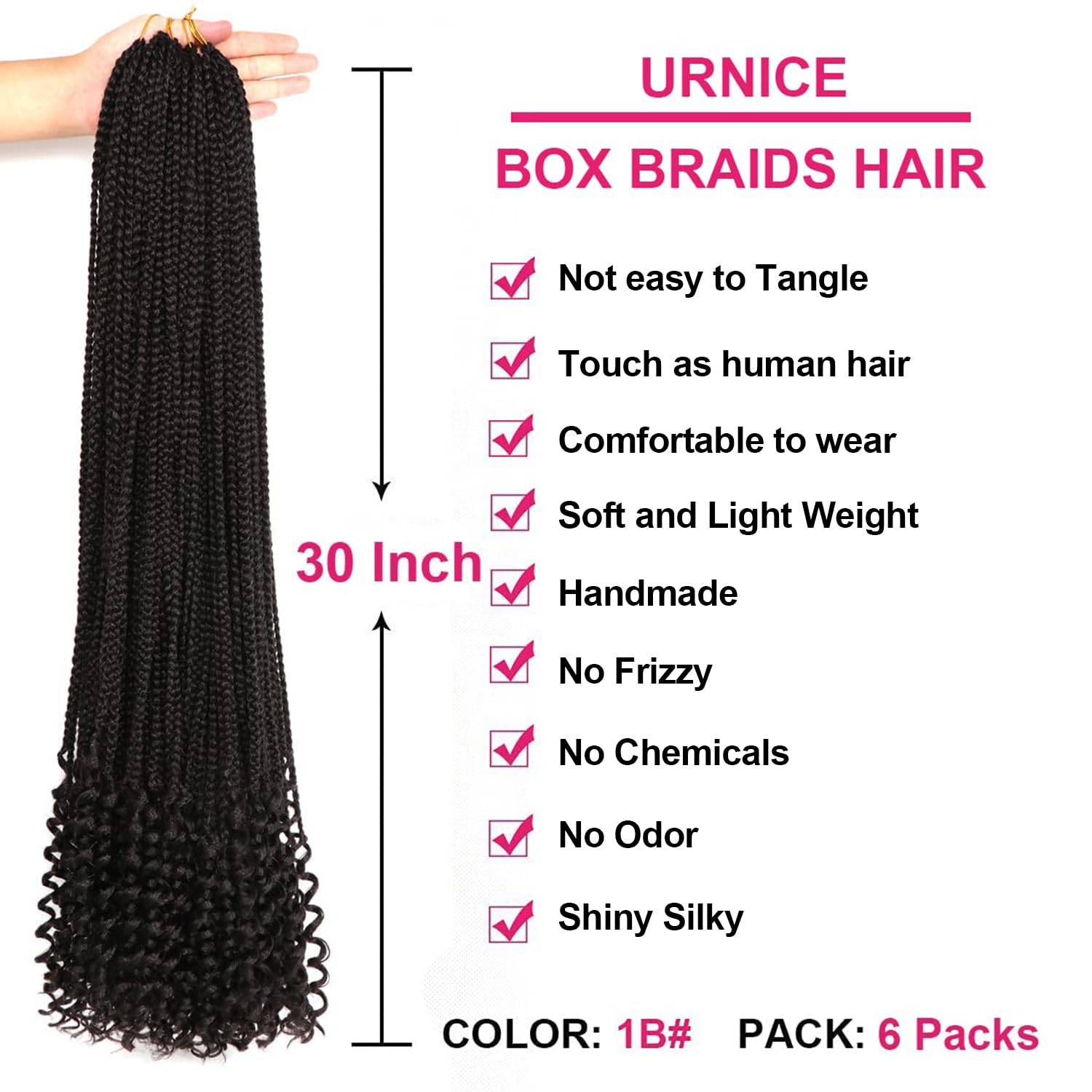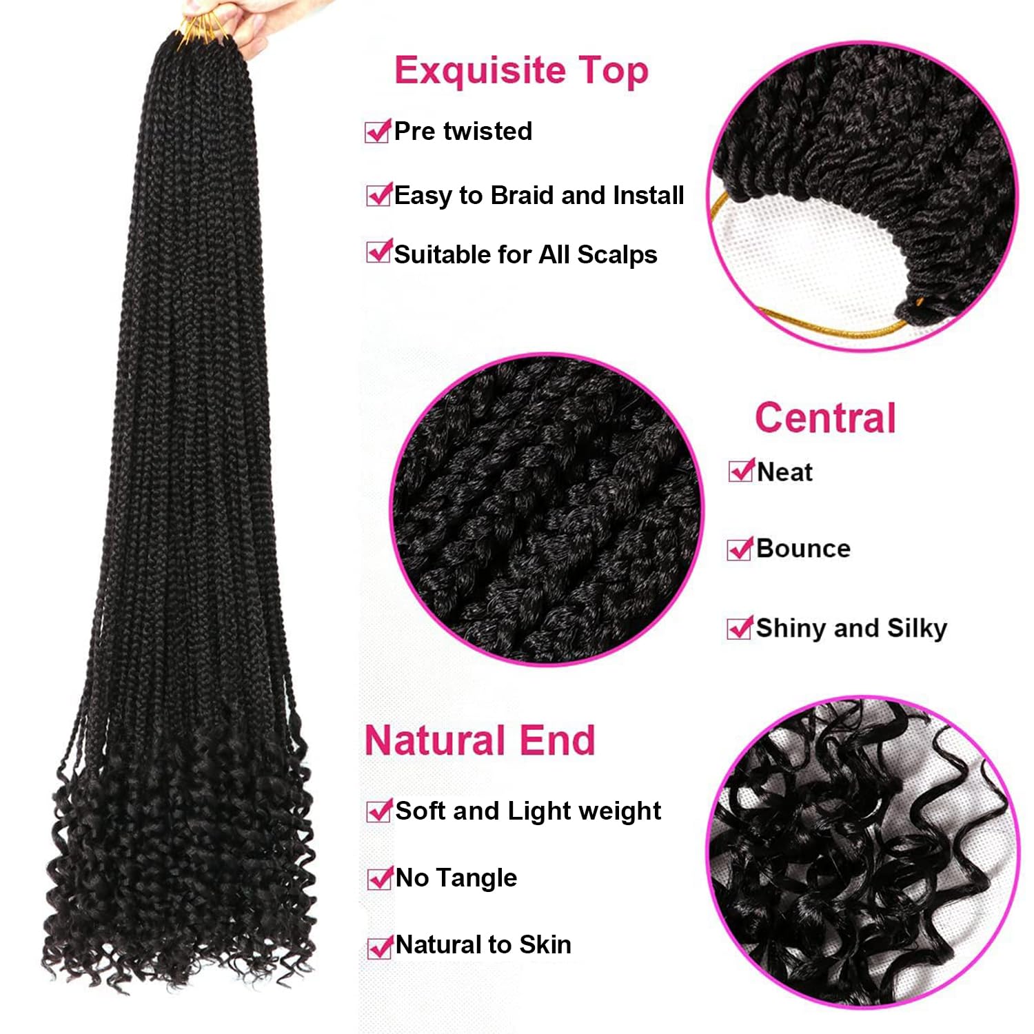❤❤Hair Material: Goddess Box Braid Crochet Hair Made with High-Temperature Synthetic Fiber , It is comfortable to the head