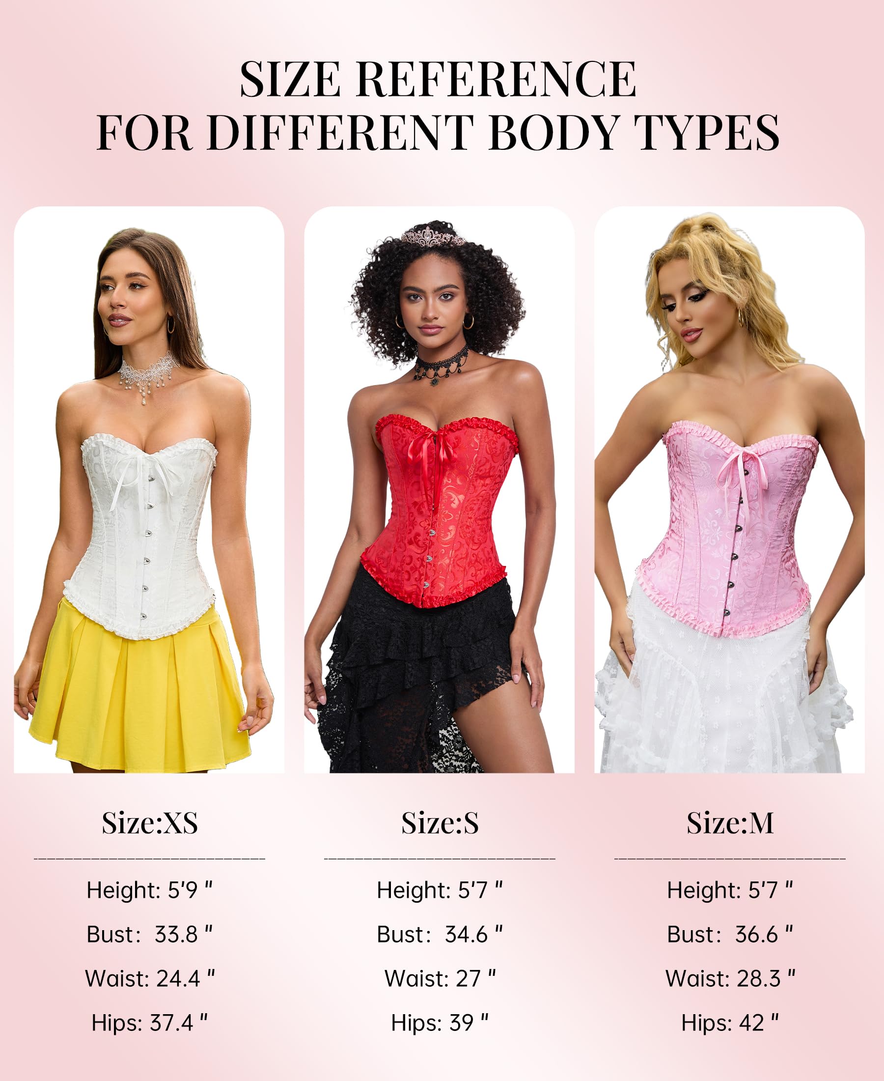 COMFORTABLE TO WEAR ALL DAY: Corsets are made with soft fabric that will mold around your body, making them comfortable for all-day wear! Our corsets for women are designed to be lightweight, breathable, and cozy so you can move in them freely. This bustier top supportive 12 plastic bone structure will help hold your spine upright so you look better and stay more energized. A waist corset will make you feel comfortable and confident in your body.