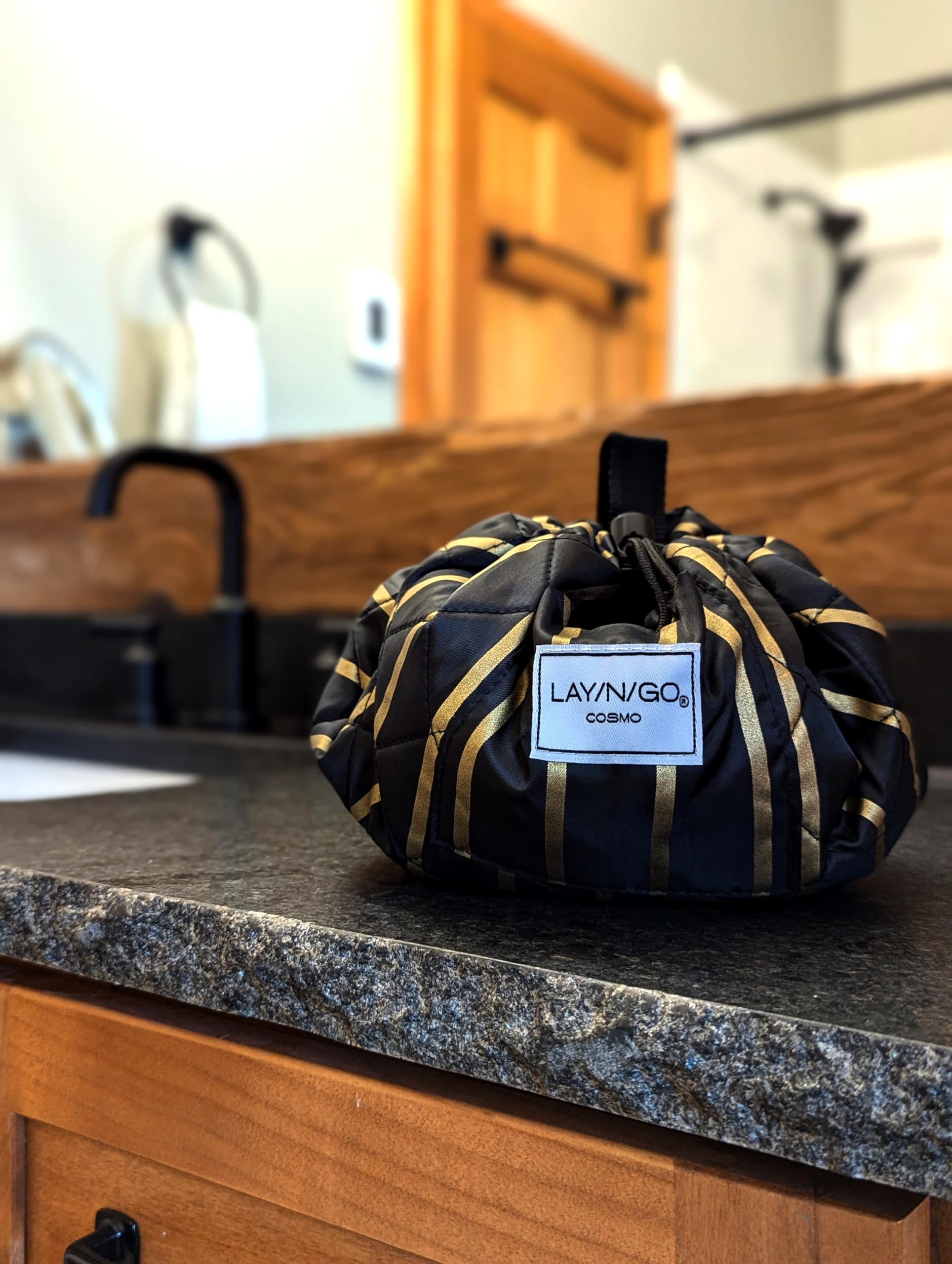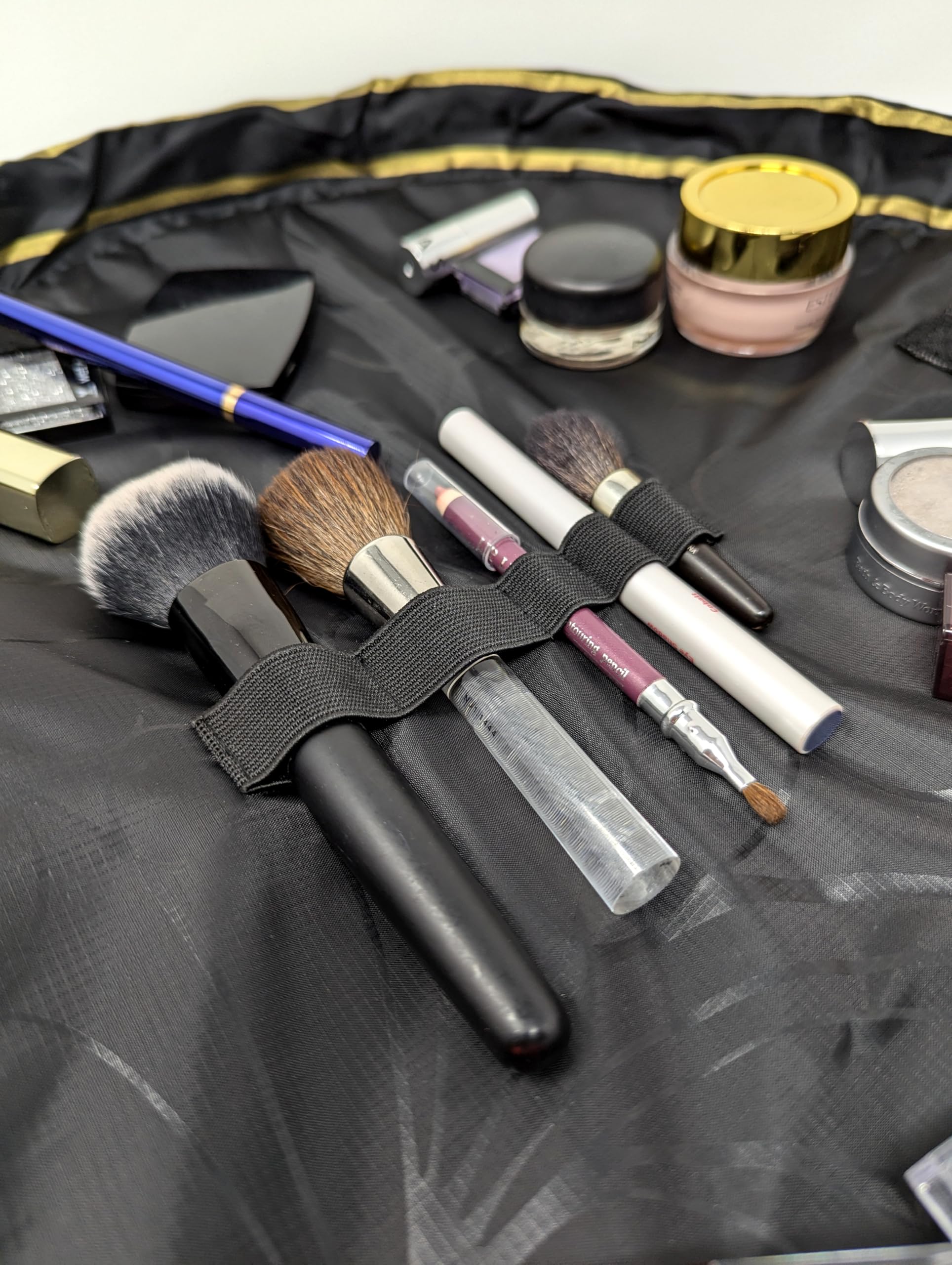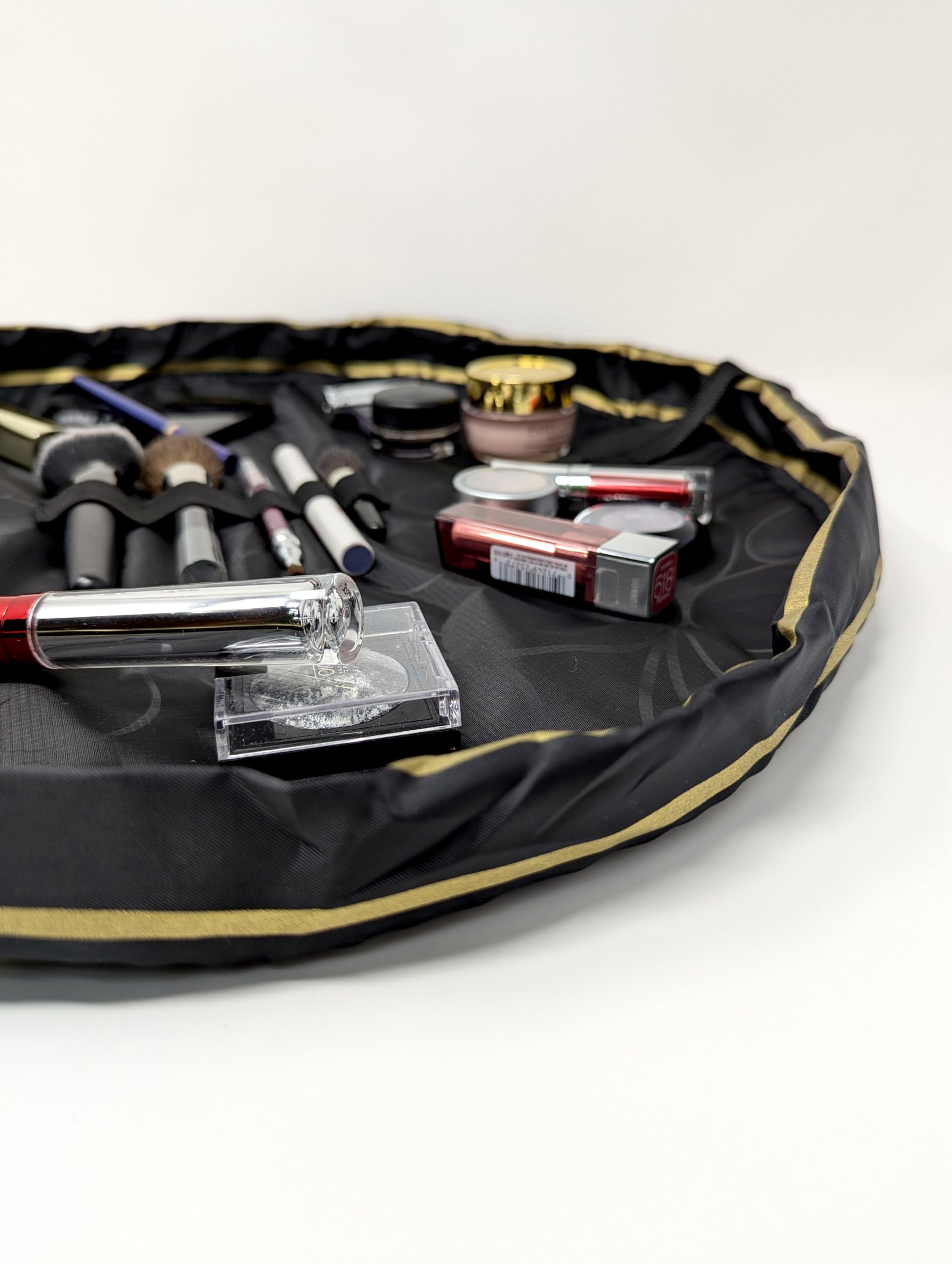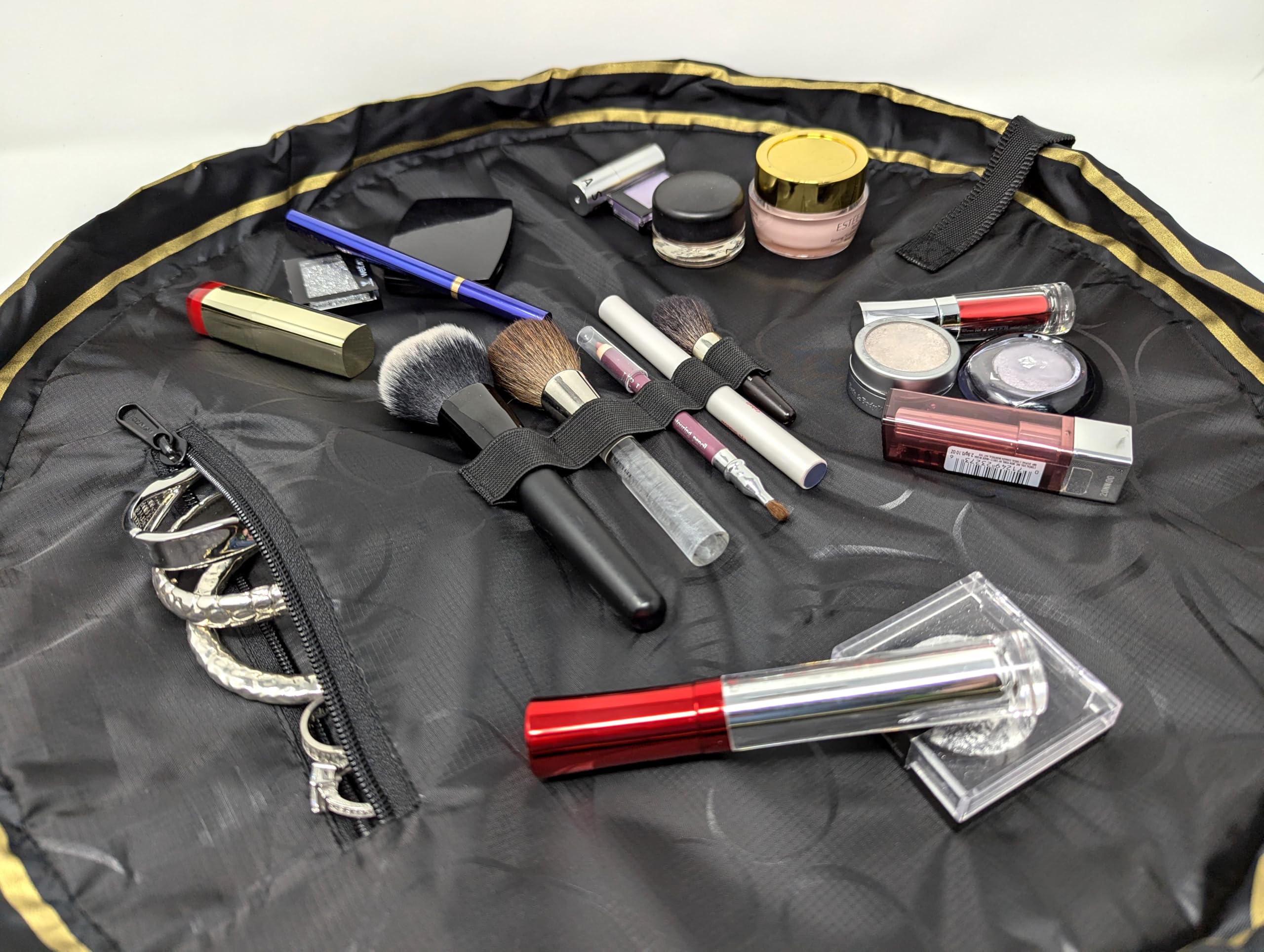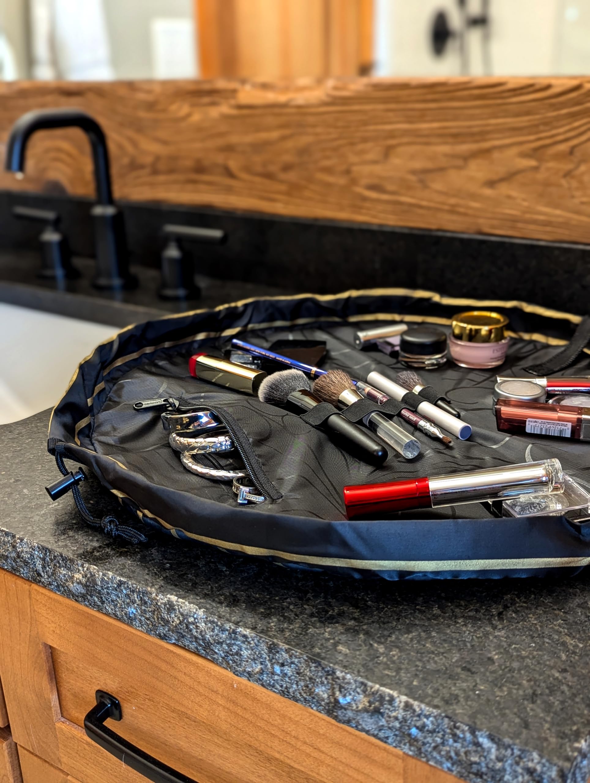 FAST CLEANUP, NO MESS: Lay flat to instantly access all your makeup, then cinch closed for effortless cleanup – no more digging through cluttered bags or bathroom counters.