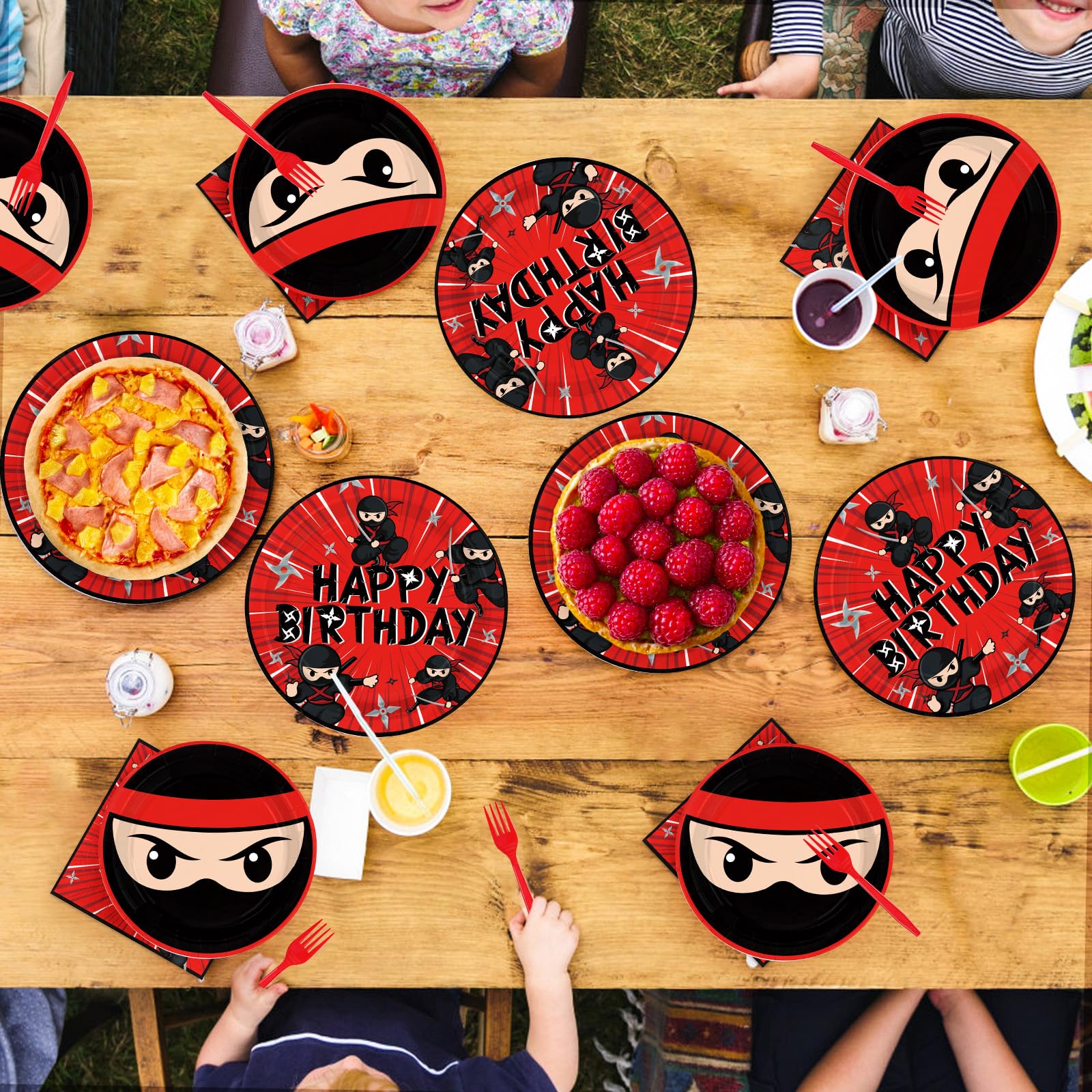 Kid-Safe & Durable Materials: Crafted from shatterproof plastic, these ninja party tableware sets withstand energetic celebrations without cracking. Forks feature smooth, rounded edges for safe handling by little hands, while thick, absorbent napkins resist tearing during messy cake battles or juice spills. Unlike flimsy alternatives, our set balances affordability with reliability—plates hold heavy foods without sagging, and forks won’t snap under pressure. Perfect for indoor/outdoor events