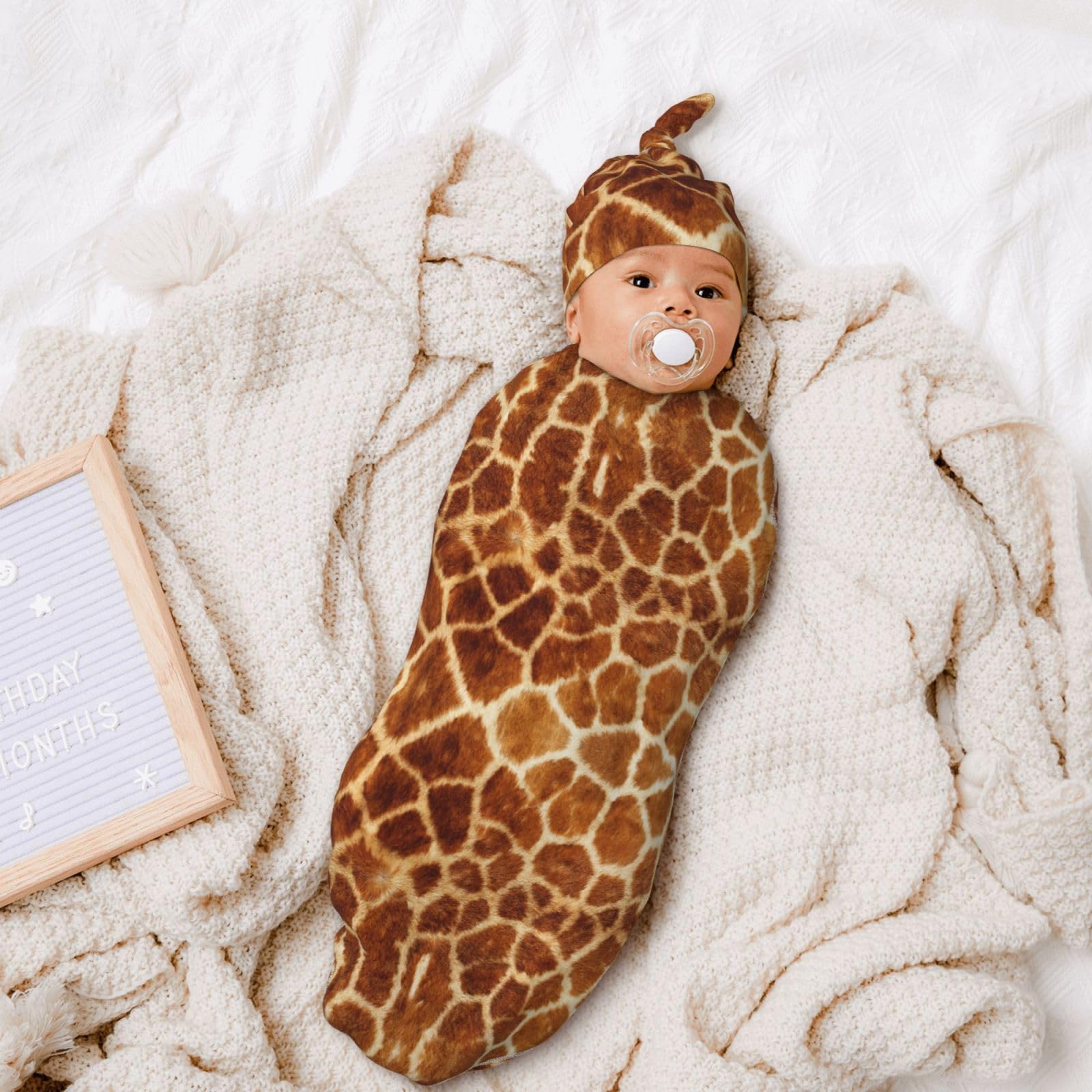 Size:1pcs Baby Swaddle Blanket Is 11.4*21 In, 1pcs Matching Hat Is 6.3*13 In. Suitable For Unisex Babies Aged 0-6 Months.